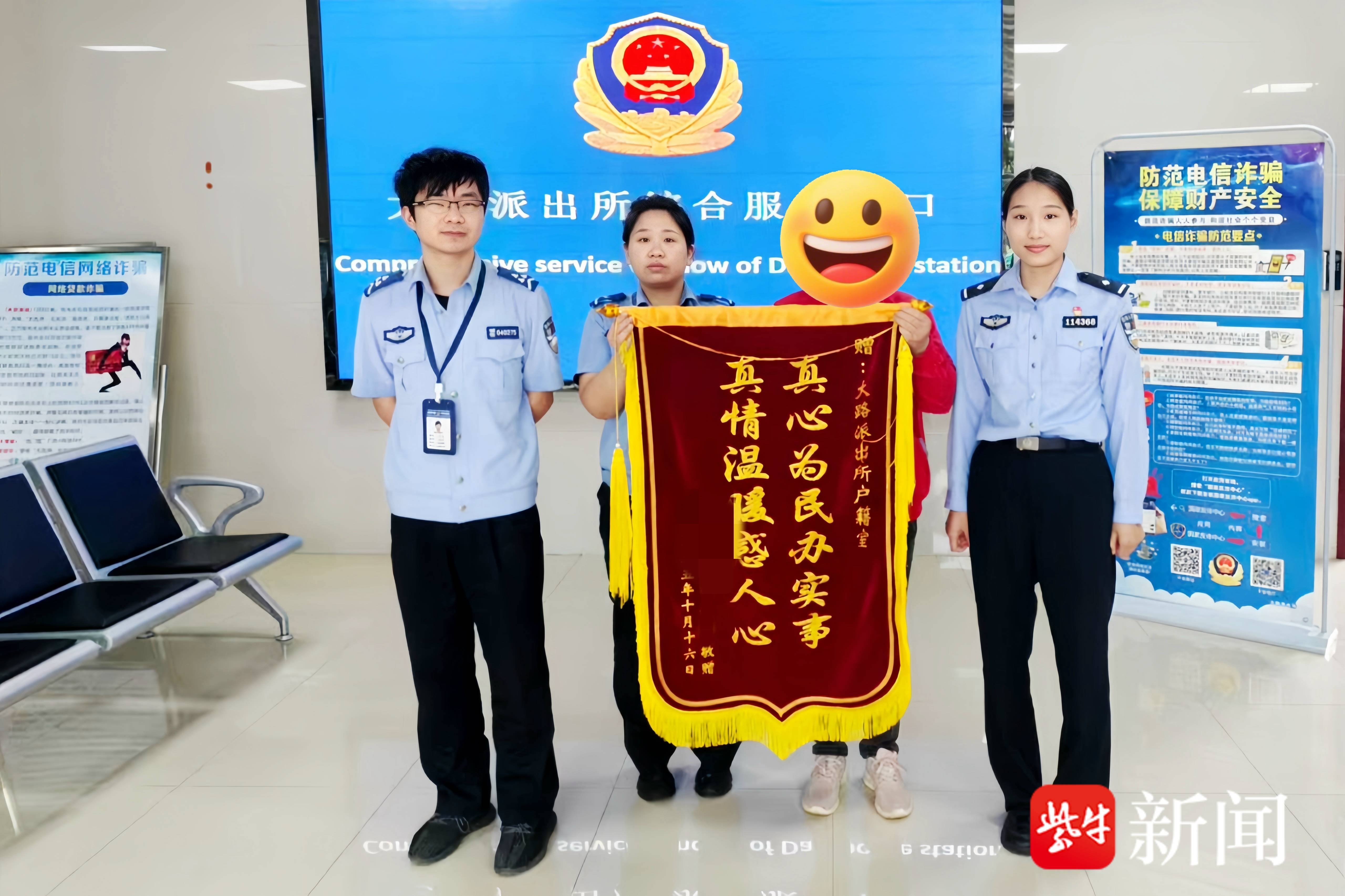 扬子晚报网10月22日讯(通讯员 毛润民 记者 姜天圣)“谢谢你们帮我的小孙女办理落户,我儿子现在身在国外,他特意委托我来感谢你们。”10月16日上午,镇江经开区大路派出所户籍室收到辖区居民胡女士送来的一面锦旗,感谢民辅警帮她解决小孙女的落户难题。