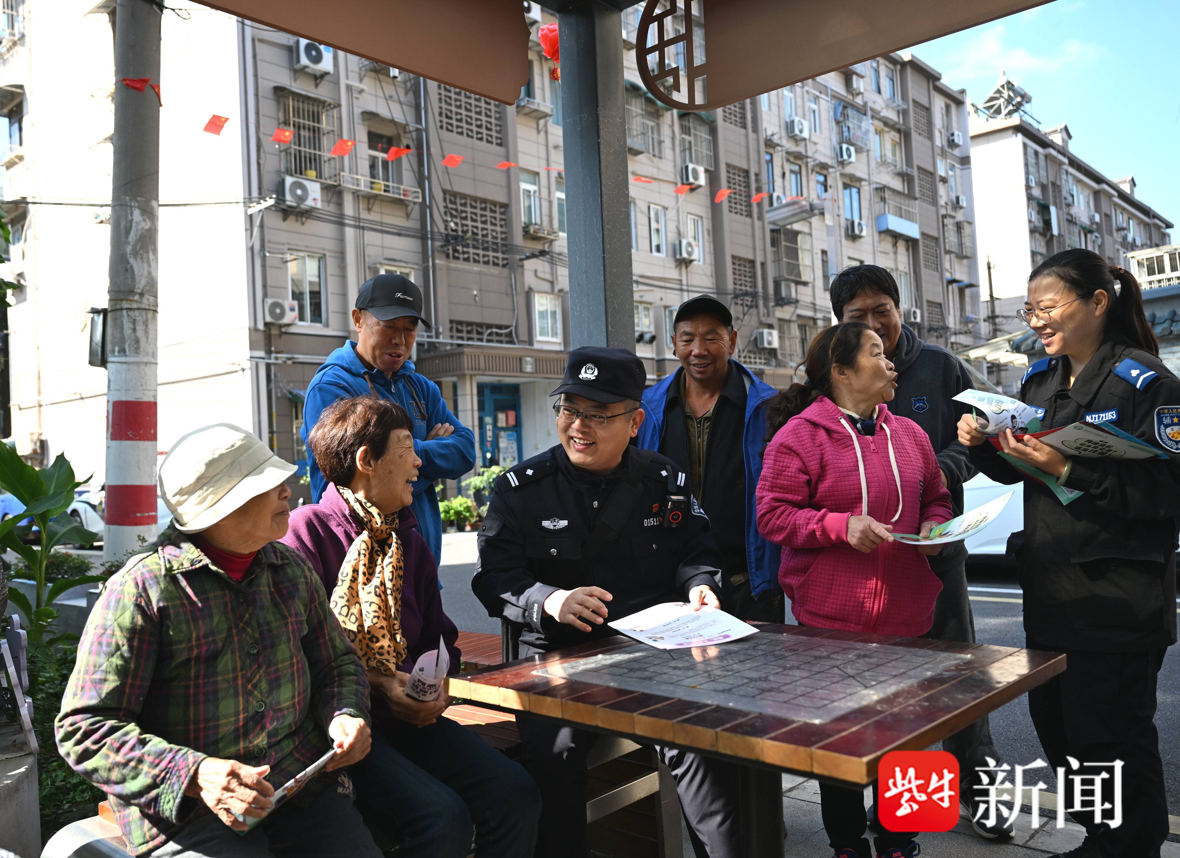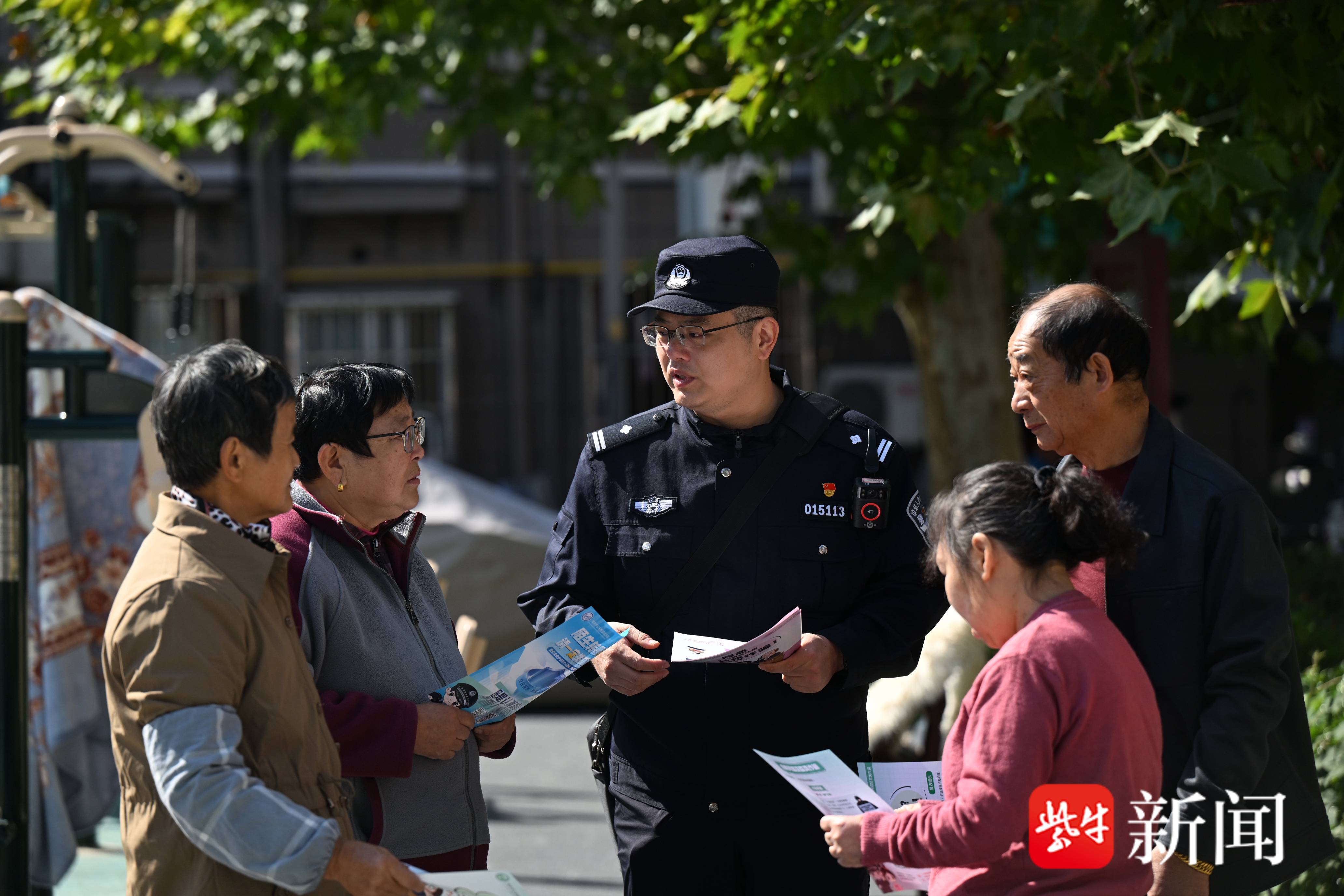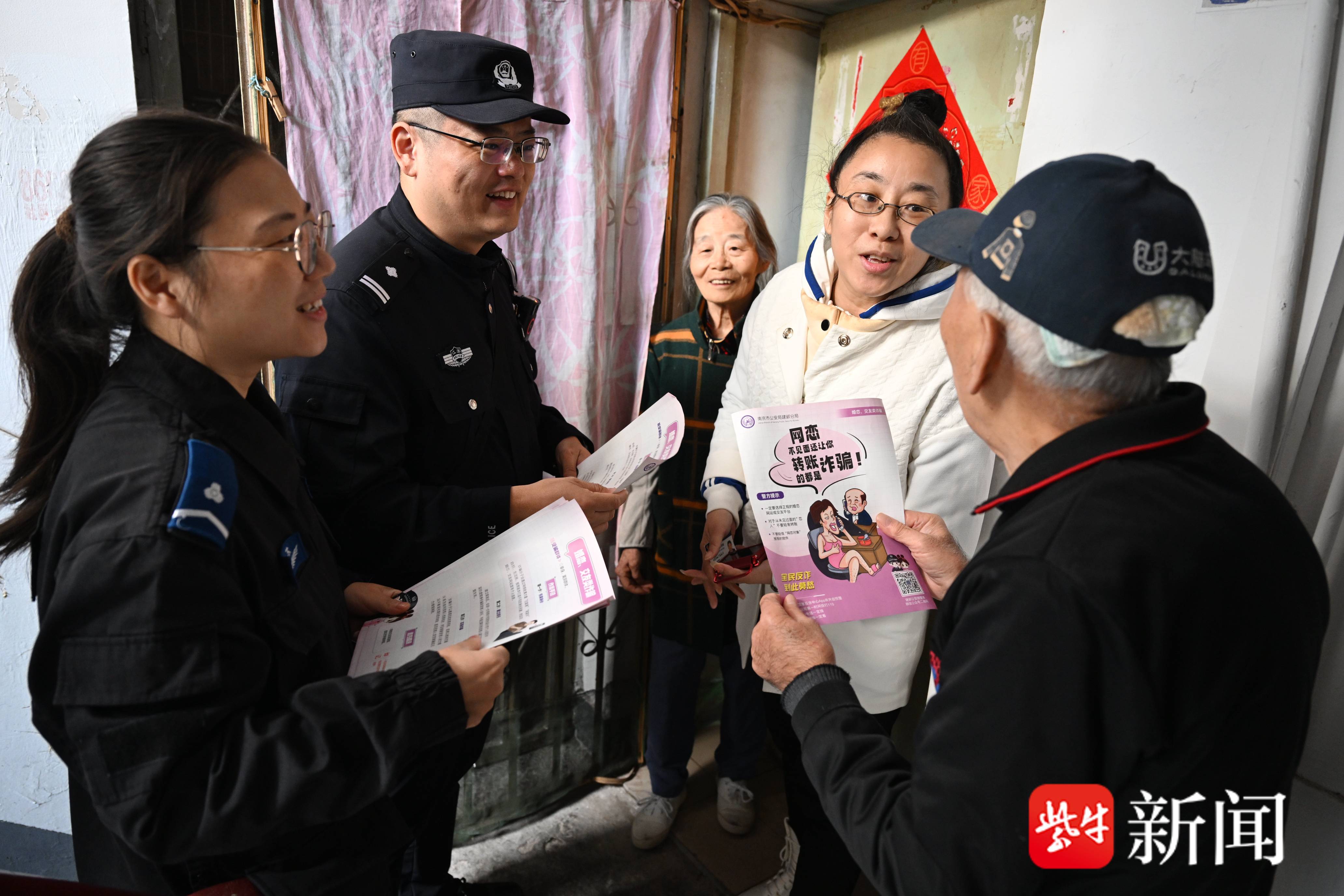 反诈宣传要不断变花样才能有好的效果,10月22日,南京市公安局建邺分局南湖派出所民警、辅警走进居民小区开展“扫楼”反诈宣传行动,在小区广场和居民家中,面向老年人开展防诈骗宣传。