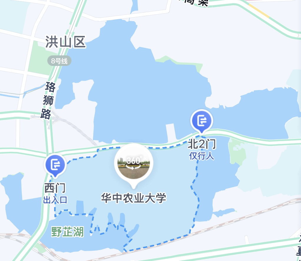 扬子晚报/紫牛新闻记者从华中农业大学的地图中可以看到,学校周围以及内部有多处水域贯通,前后毗邻南湖和野芷湖,其中南湖包围了华中农业大学校区的东边和北门附近,野芷湖则在包围了学校南门,且有部分水域延伸到了学校内部。