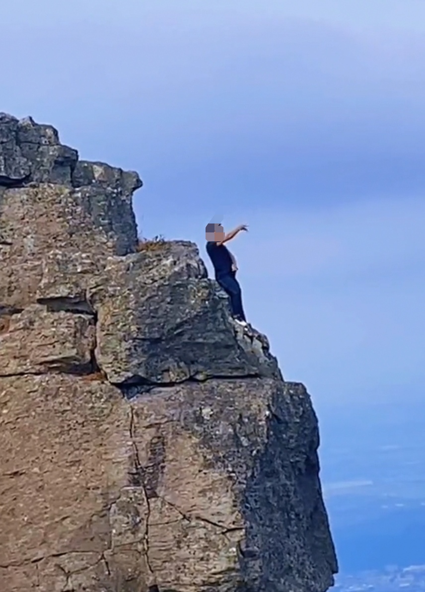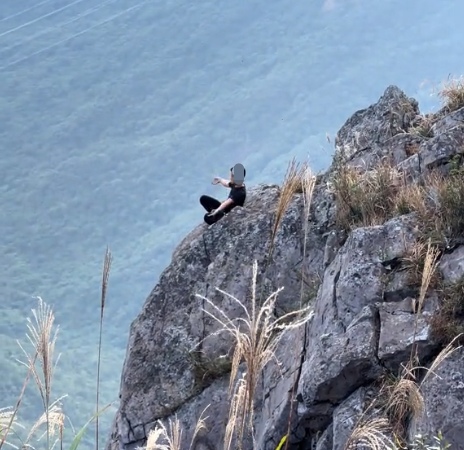 记者在网友发布的视频上看到,一名男子或站或坐在在悬崖边的石头上,双手舞动,疑似练功的模样,周边无防护栏。“就在东莞银瓶山森林公园,当时大家看到都喊危险,可他听到后还在那里鼓掌,说实话,我站在远处拍这段视频有点慌!”有网友说。还有网友称,自己爬到山顶就发现这名黑衣男子在海拔800米左右的悬崖边坐着,太危险了,稍有不慎就会滑下去。