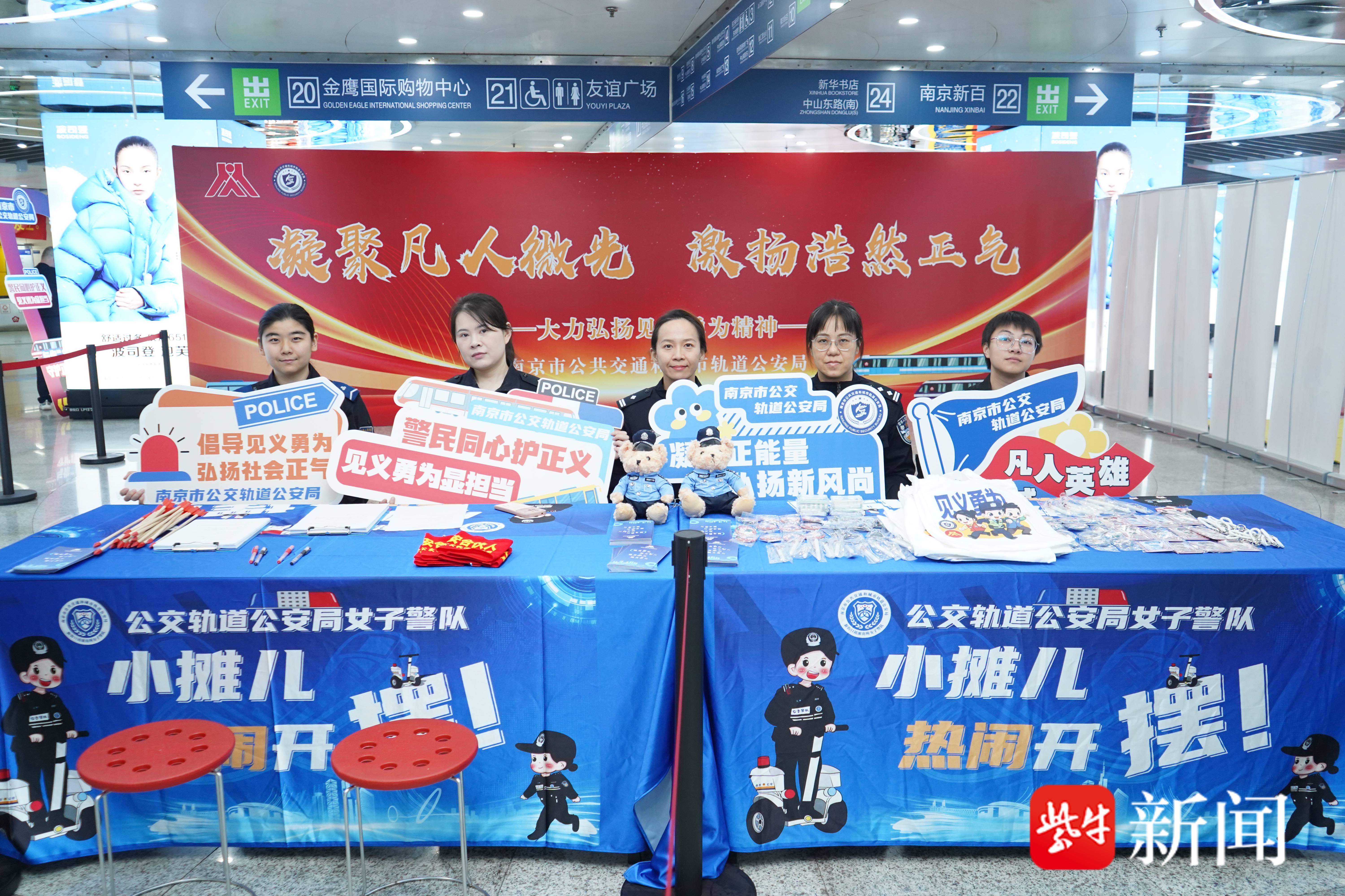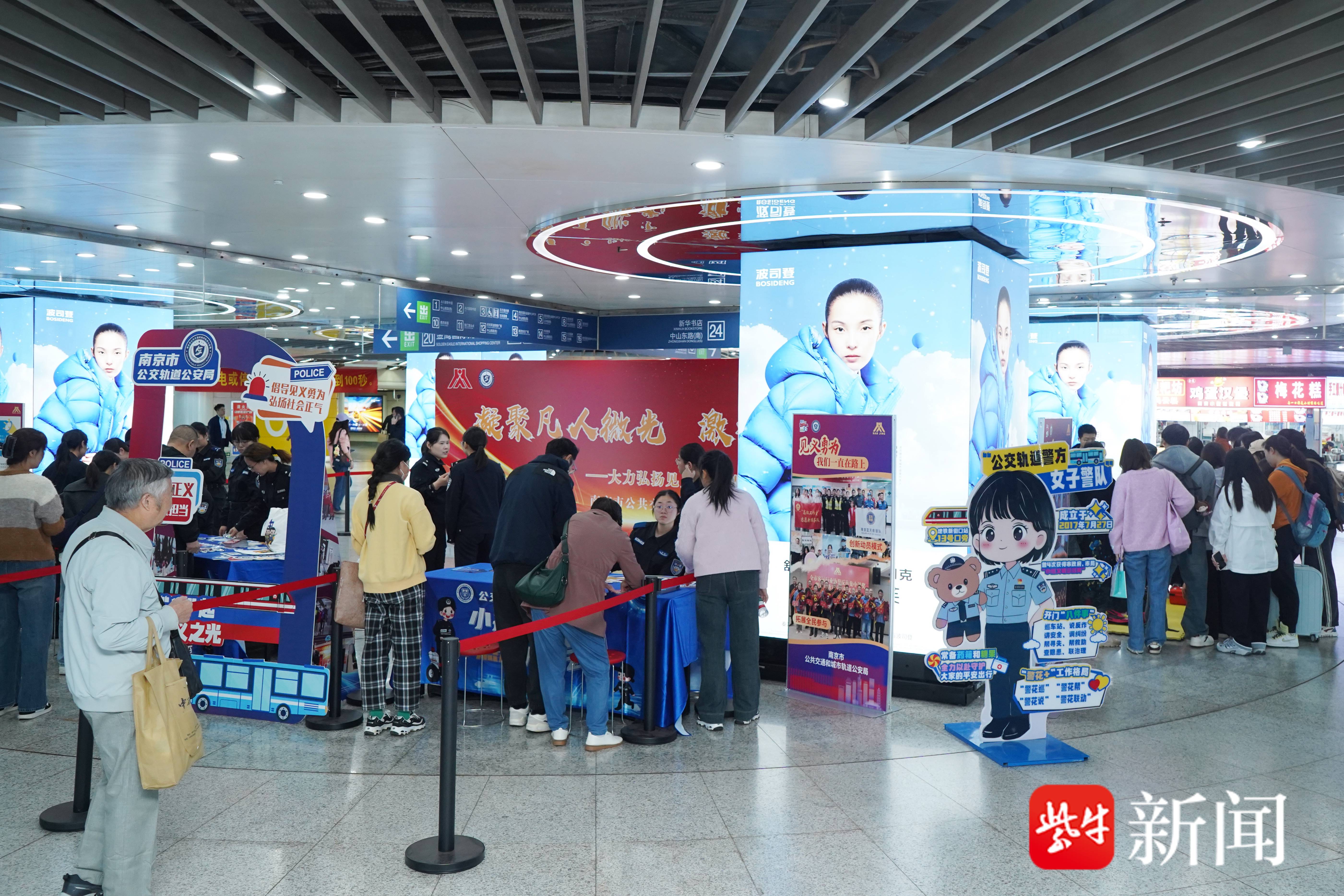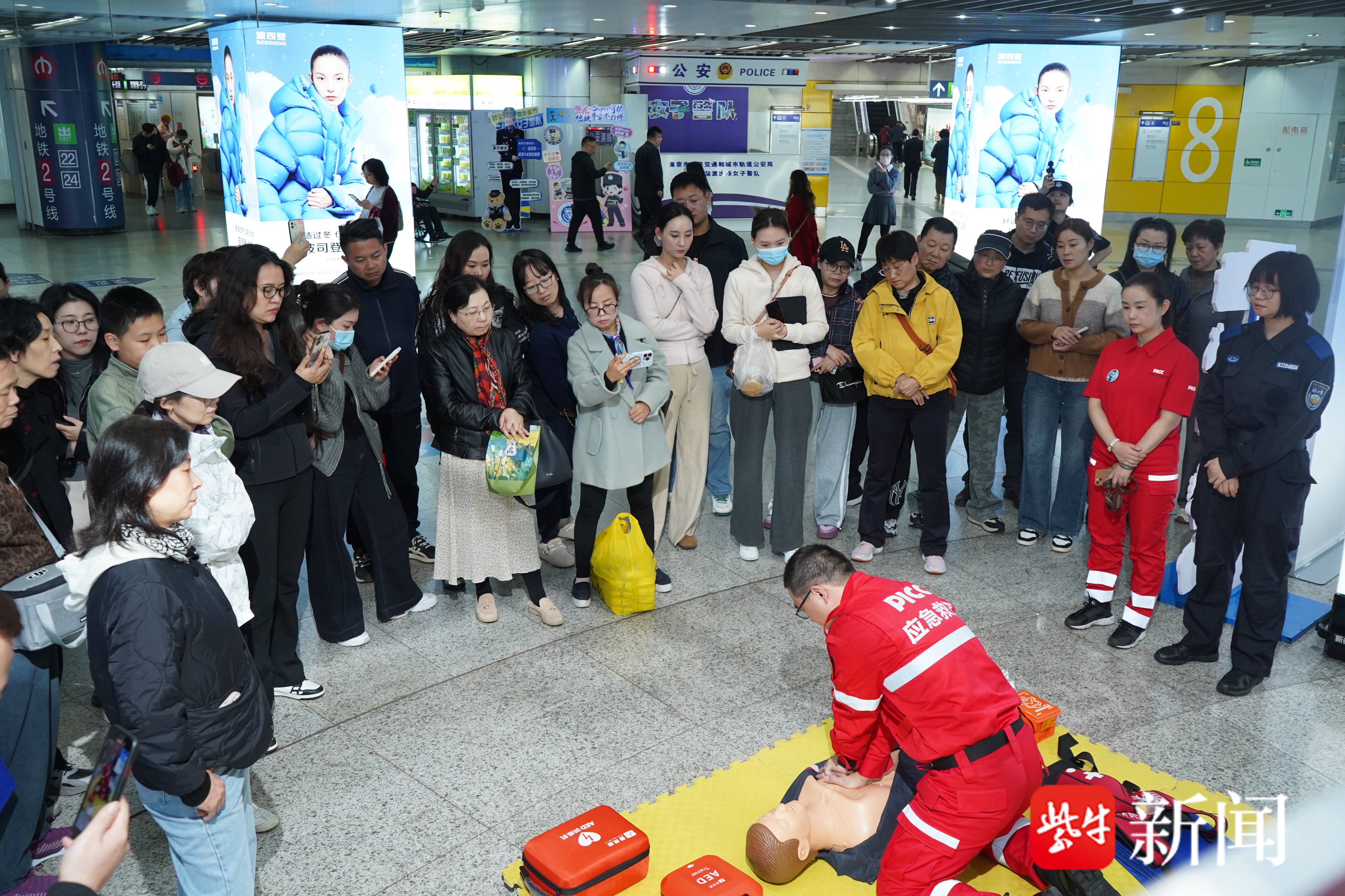 11月11日上午,南京新街口地铁站标志性的大圆盘区域,南京公交轨道公安局女子警队策划一场见义勇为活动,将繁忙的交通枢纽变成了“互动课堂”。