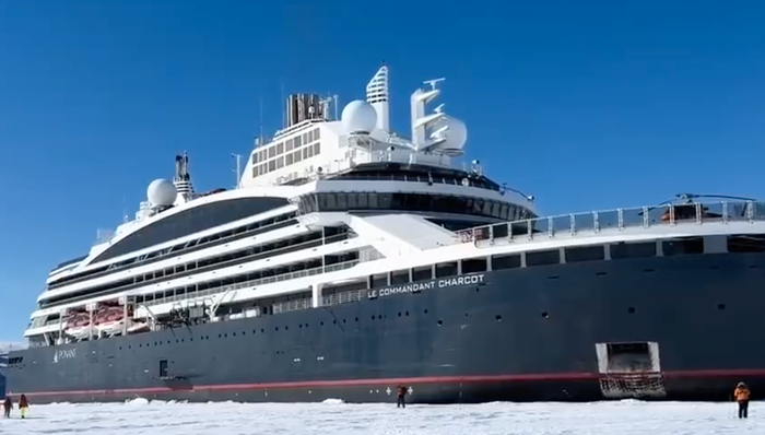 公开资料显示,“夏古号”邮轮全称为“指挥官夏古号”,是庞洛邮轮运营的全球首艘液化天然气驱动气电混合动力极地探险邮轮,具备PC2级破冰能力,船壳由Aker Arctic合作设计可实现双向破冰航行模式,可抵达地理北极点及南极威德尔海等极端区域。该邮轮设计载客量为245人,于2021年交付后,主要执行北极点、格陵兰东北部及南极威德尔海航线。