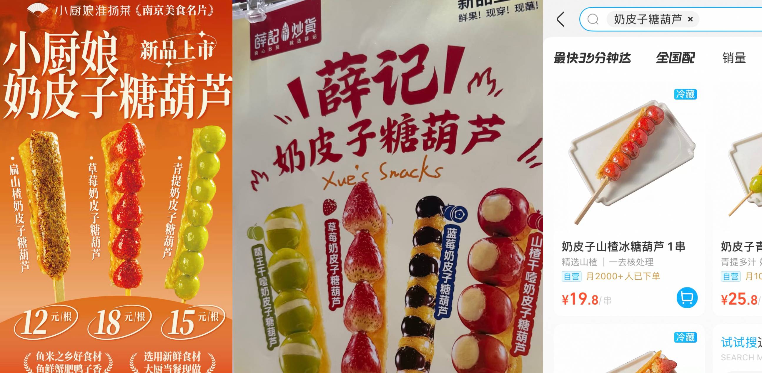 市场的火热行情,也吸引了不少连锁品牌入局。记者注意到,在个人卖家供应有限、市场供不应求的背景下,盒马、薛记炒货、小厨娘淮扬菜等品牌也于近期入局。11月25日中午,记者走访南京一家盒马超市门店看到,柜台已上新山楂、青提等多种口味的奶皮子冰糖葫芦。不过,即便恰逢用餐时间,现场也没有出现想象中的火爆场景,各类口味的奶皮子糖葫芦备货齐全、供应充足。一位正在用餐的消费者向记者表示,自己此前也关注到了这款网红小吃的热度,但因为个人不爱吃甜食,即便如今现货充足也不会特意购买。同时她认为,冰糖葫芦本质上是解馋小食,近二十元的定价偏高,性价比不足。