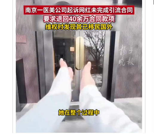 紫牛热点| 南京一医美公司起诉网红未完成引流合同欠款40余万,发现其已移民国外