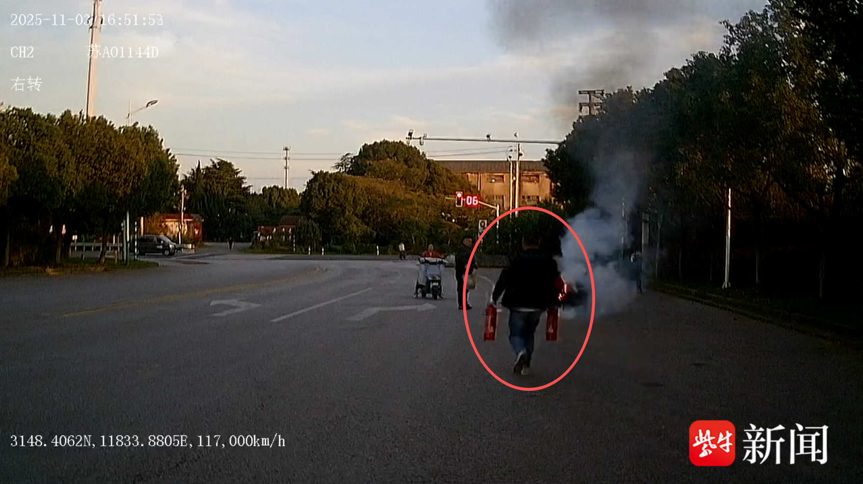 扬子晚报网11月28日讯(通讯员 费秋润 记者 笪越)近日,江宁公交驾驶员李瑞金正驾驶着872环一路行驶至广济路路段。突然,前方一辆冒着火光的电瓶车闯入他的视线,只见车主焦急又无助地站在一旁等待着救援。危急时刻,李瑞金没有丝毫犹豫。他迅速且沉稳地将公交车停靠在安全区域,抓起车上的2瓶灭火器,冲向起火的电瓶车。