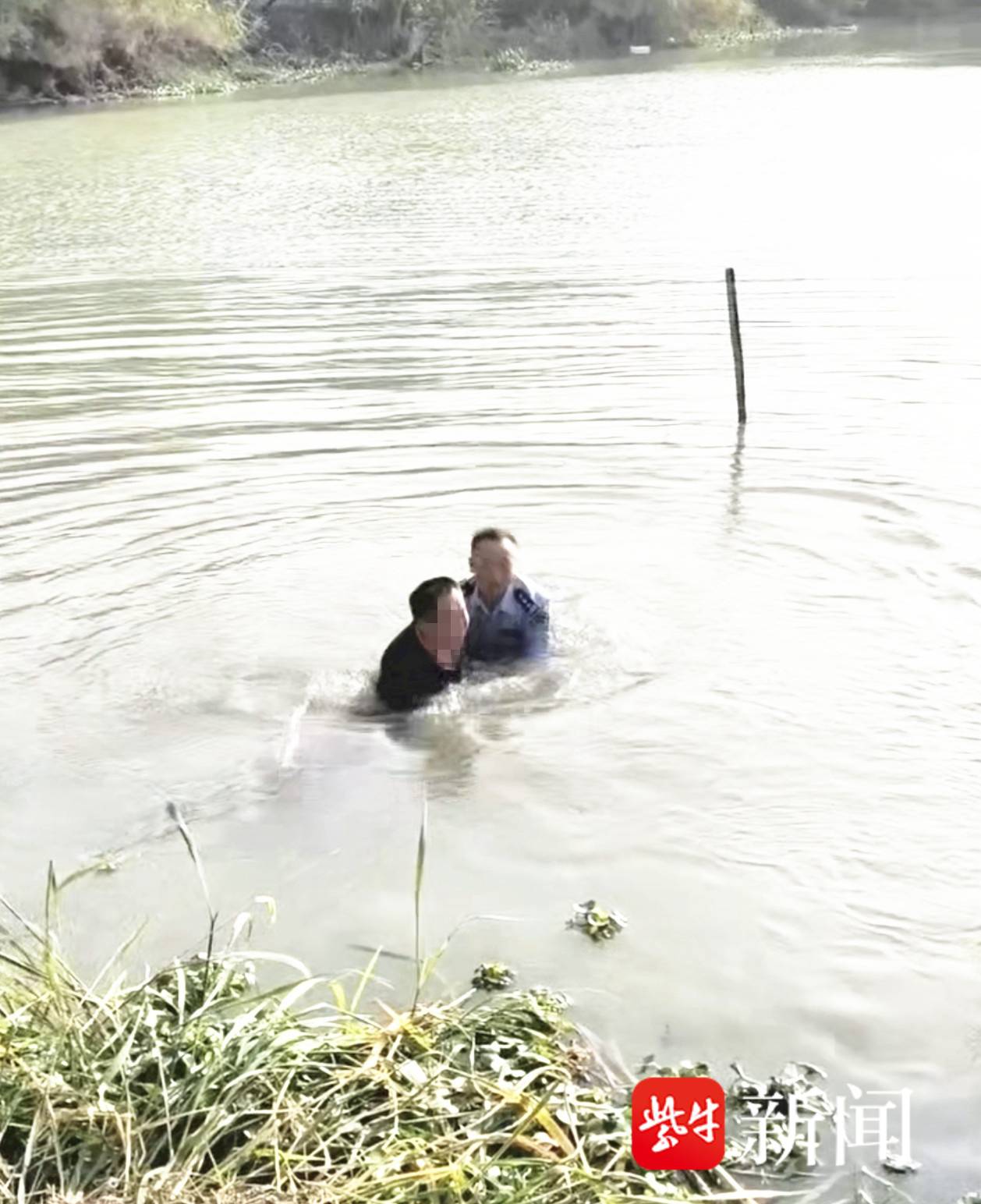 视频|男子钓鱼“踩点”时滑入深河,年近六旬民警闻呼救声跳河救人