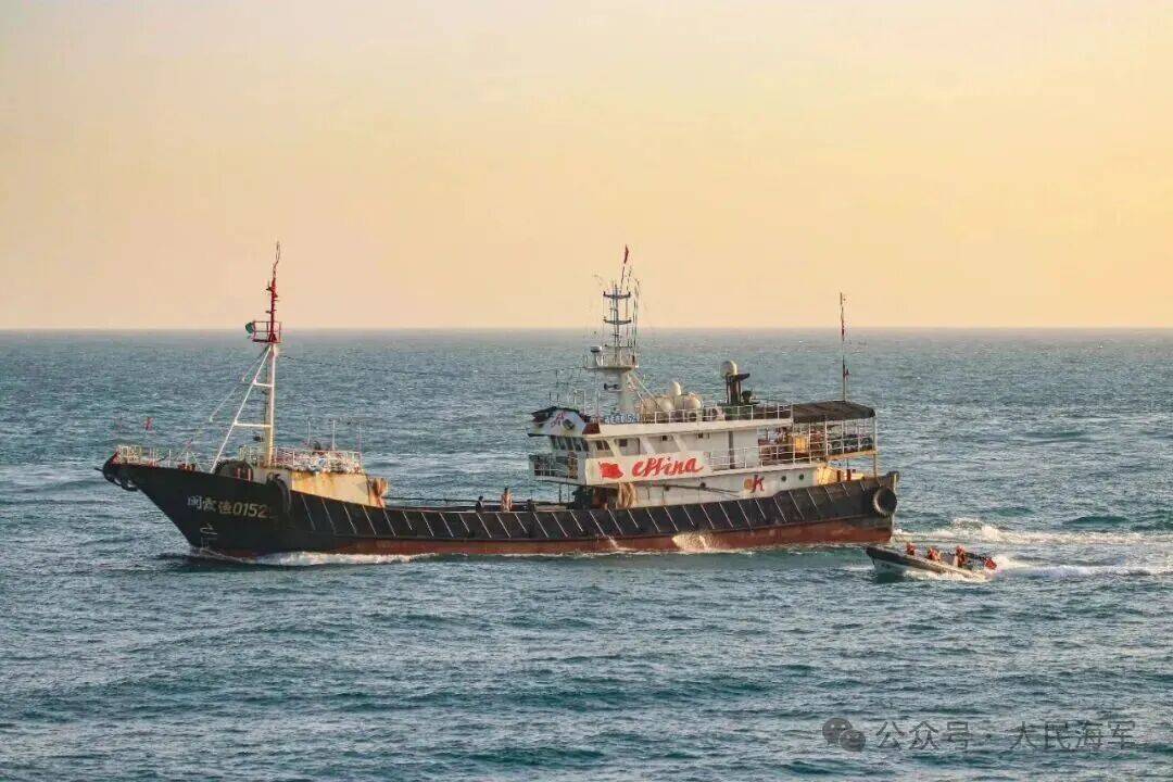 小艇靠近渔船