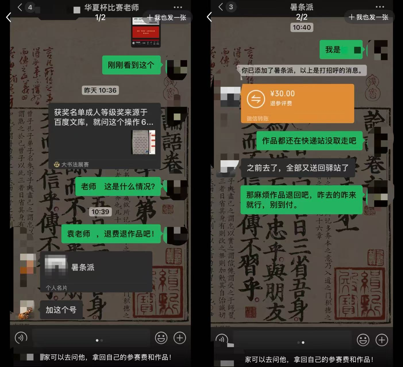 书法大赛获奖名单是网上的“人名大全”?有参赛者称已收到退费,主办方:正在陆续处理