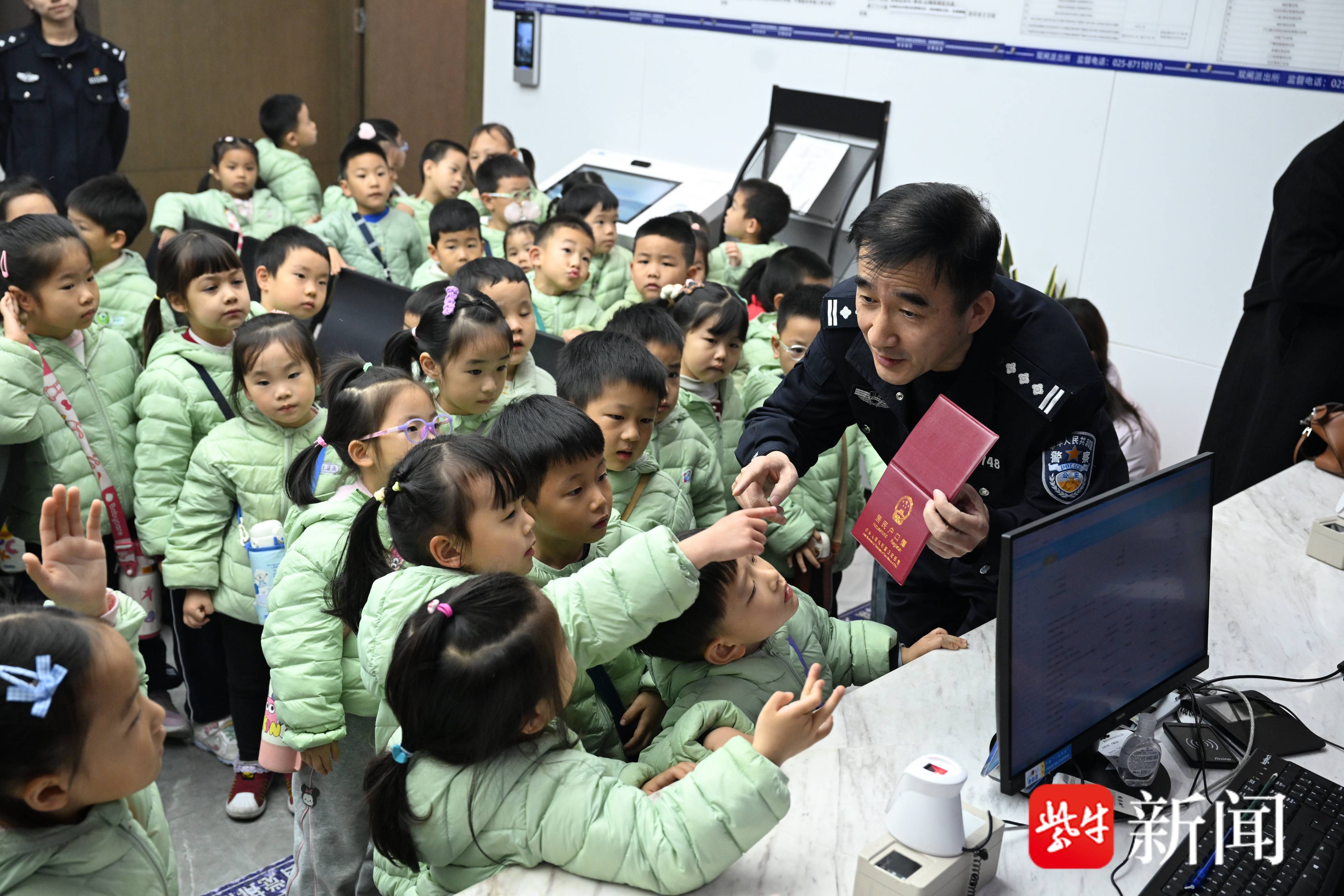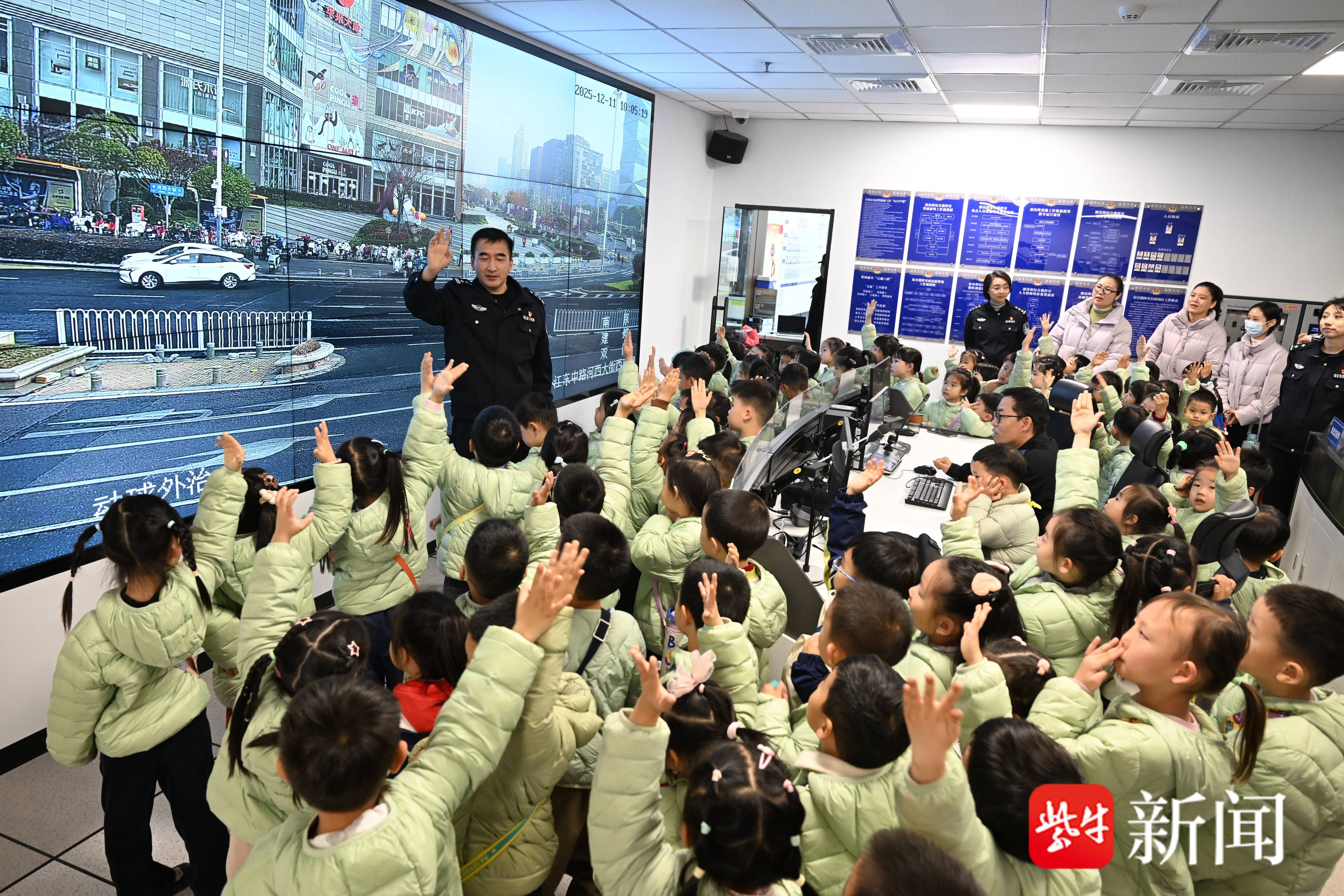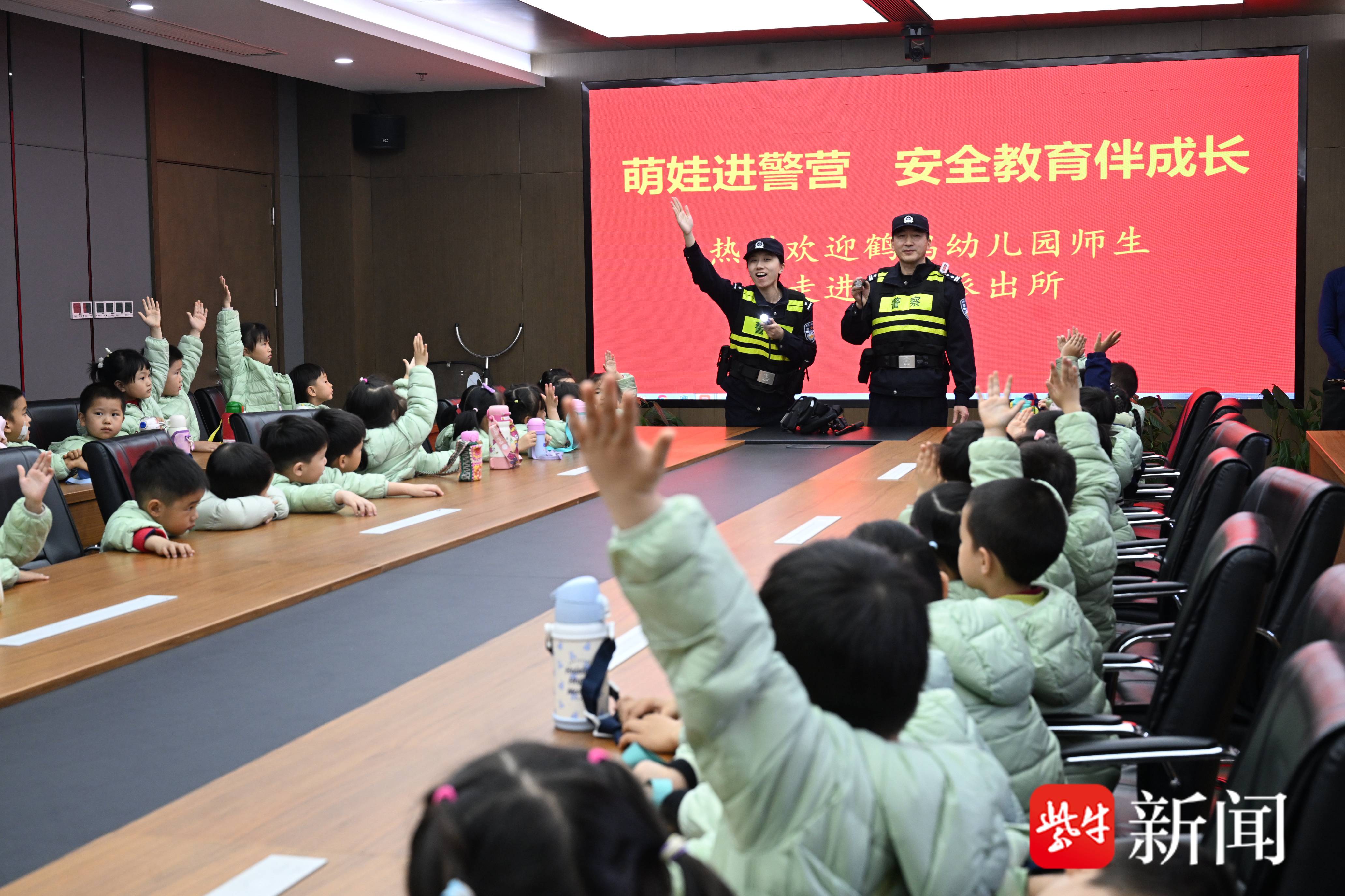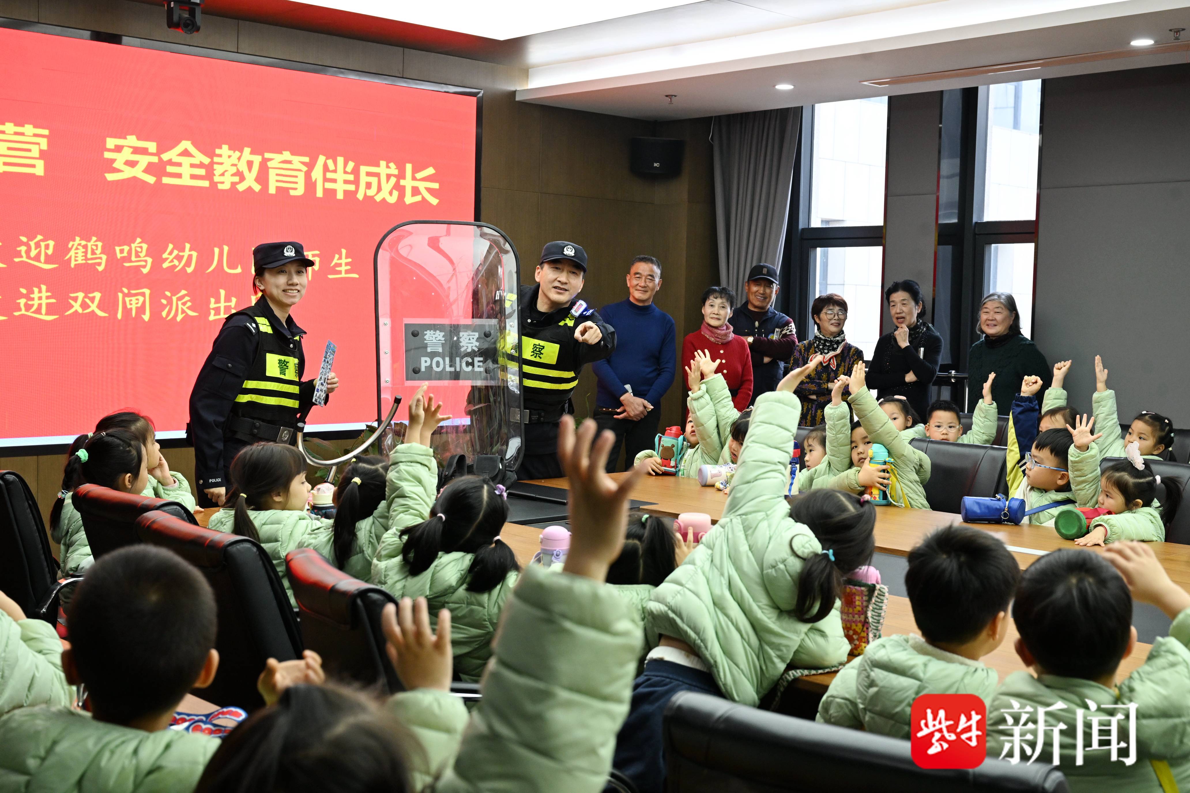 12月11日上午,南京建邺公安分局双闸派出所邀请辖区鹤鸣幼儿园近百名小朋友走进警营,开展沉浸式安全教育活动。