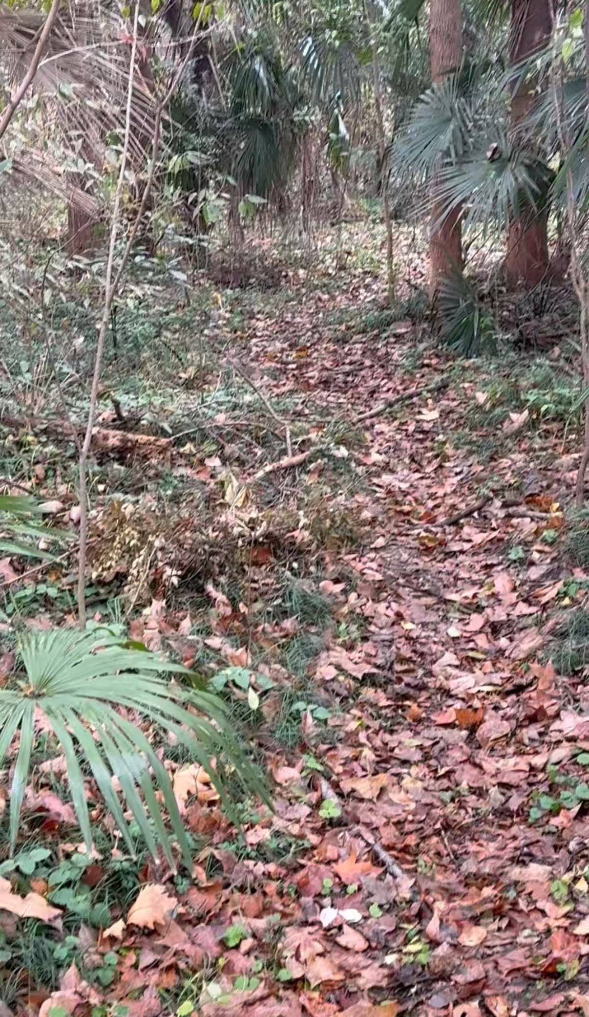 记者留意到,塑胶跑道两侧隐匿着多条“野道”。这些道路均由人长期踩踏形成,部分路径痕迹清晰,俨然已有成型道路的模样;另有一些则较为模糊,但仍能辨认出人为行走的印记。时值秋冬季节,山林间有大量落叶,厚厚的落叶层几乎铺满地面。在此情形下,如若有捕兽夹这类极具危险性的物品暗藏其中,也很难被肉眼及时发现。市民若贸然踏入“野道”,安全风险不容小觑。加之晨间的林间比较潮湿,水汽附着在落叶与泥土之上。这使得野道变得湿滑泥泞,行人走在上面,极易打滑,稍有不慎便会摔倒。