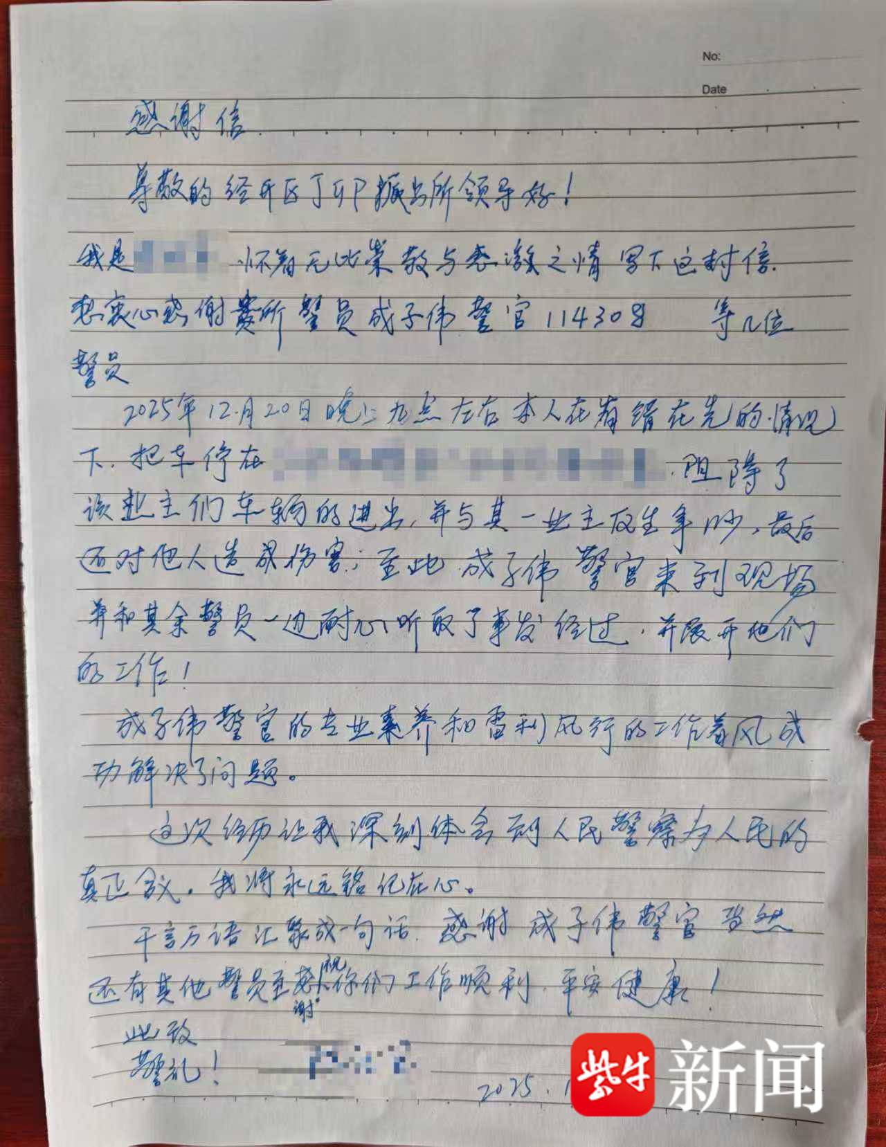 镇江经开民警巧妙化解停车纠纷,收到一封手写感谢信
