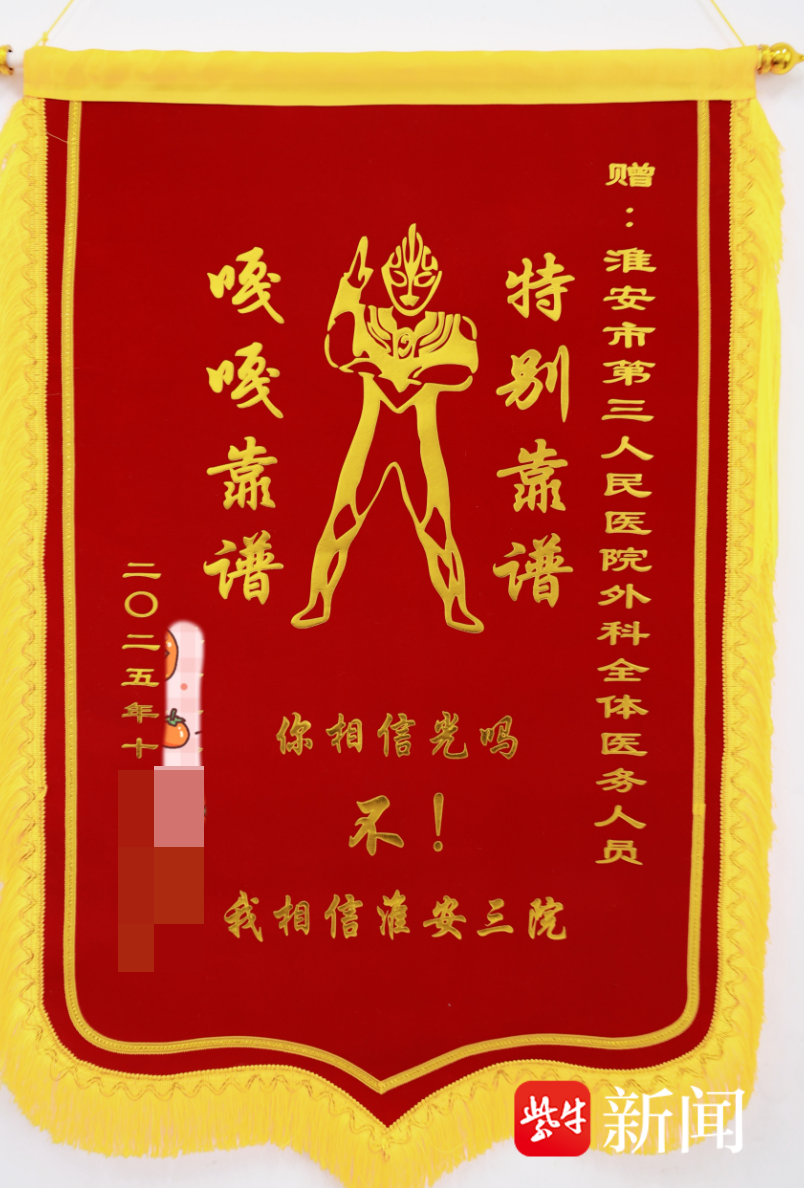 视频|淮安小伙给医生送奥特曼锦旗:“你相信光吗?不,我相信淮安三院”!