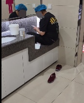 扬子晚报网1月2日讯(记者 郭一鹏) 1月1日晚,有网友在社交平台上发了一段视频,称重庆江北机场T3航站楼,E07登机口到E08中间的洗手间,有一位某店家的阿姨直接坐在洗手间台面上洗脚。“这个高度,一般都是儿童用的洗手台,这不怕真菌细菌传染吗?”该网友称。