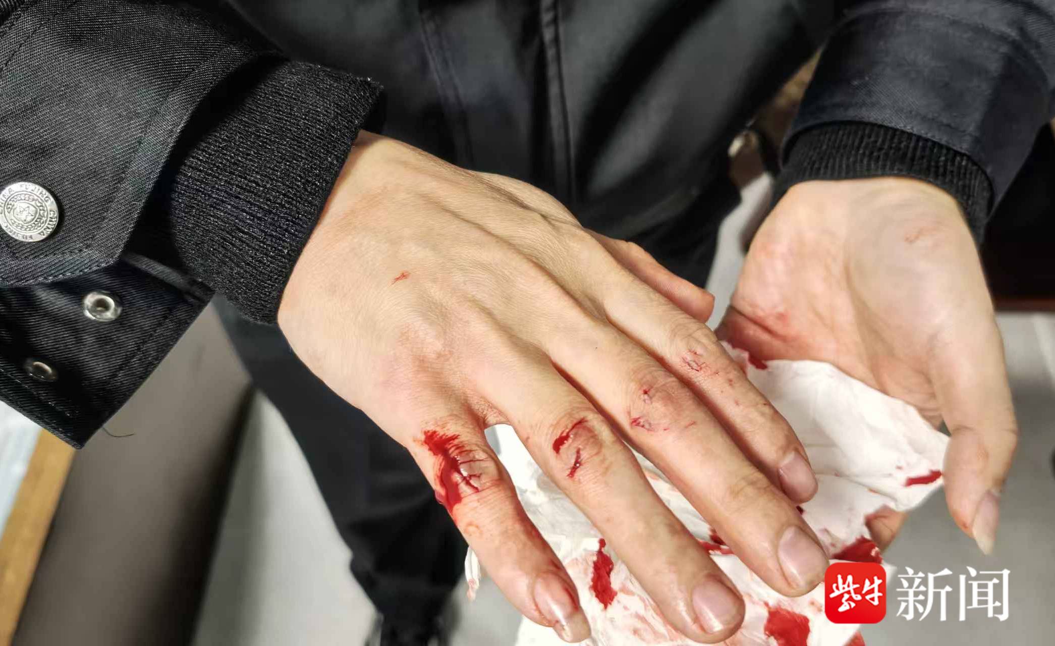 现场,民警辅警与群众合力将司机带上岸并交由也已赶到的120急救医护人员处置。此时李玉坤才发现,自己双手满是鲜血,再细看,手上多处被玻璃划伤。记者采访了解到,李玉坤送医后,手部缝了3针。