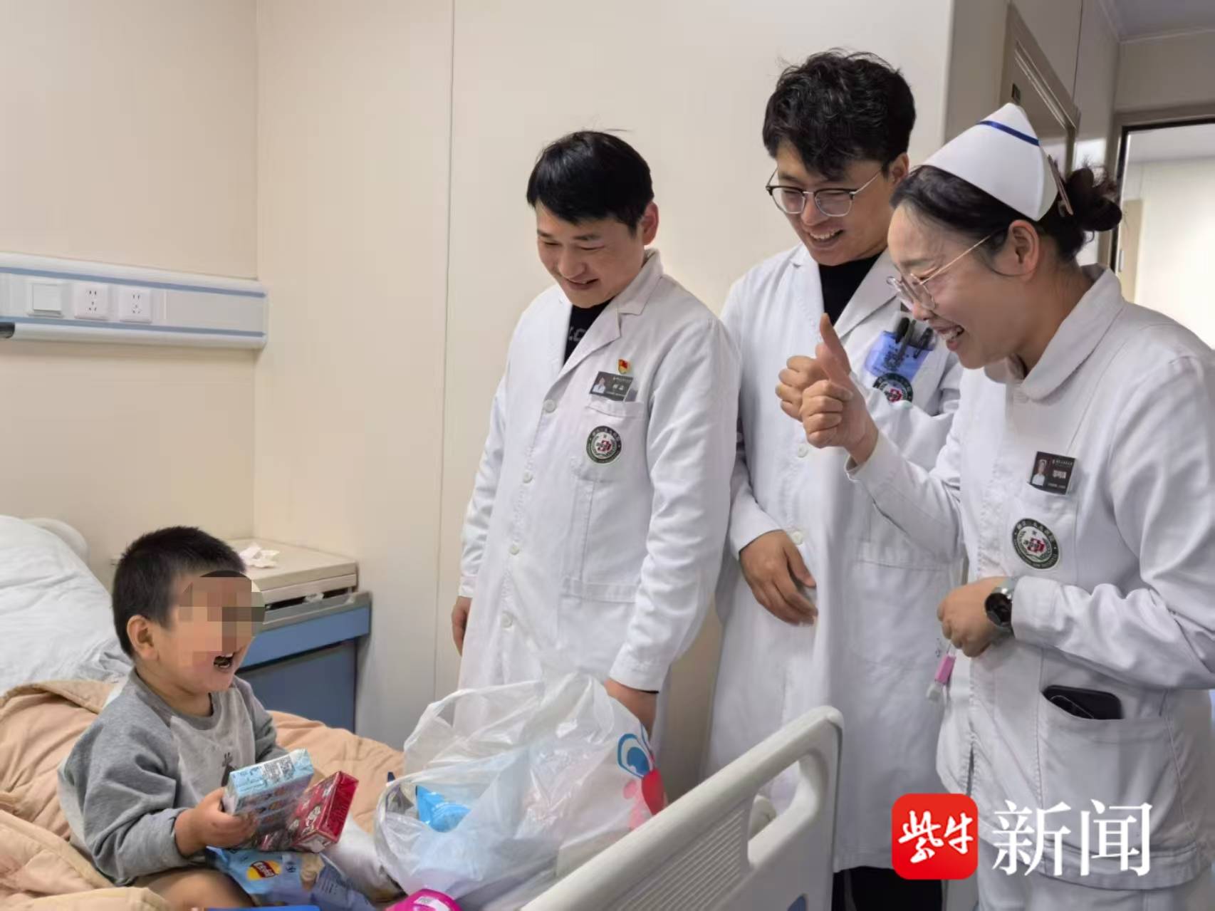 术后护理团队为晨晨定制了康复计划,从伤口换药到游戏疏导无微不至。2026年1月6日出院时,孩子已能抱着医护人员送的零食玩耍。
