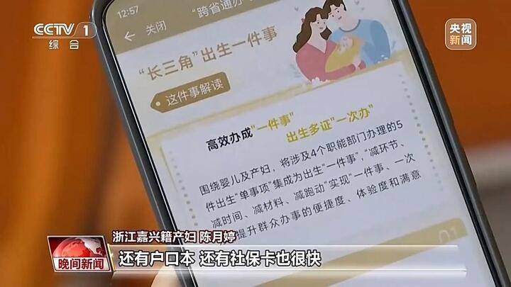 浙江嘉兴的陈月婷常年在上海工作生活,怀孕分娩时她选择在上海的医院就医,新生儿户口、身份证、医保卡等手续在“随申办”“浙里办”等平台一站式办结。