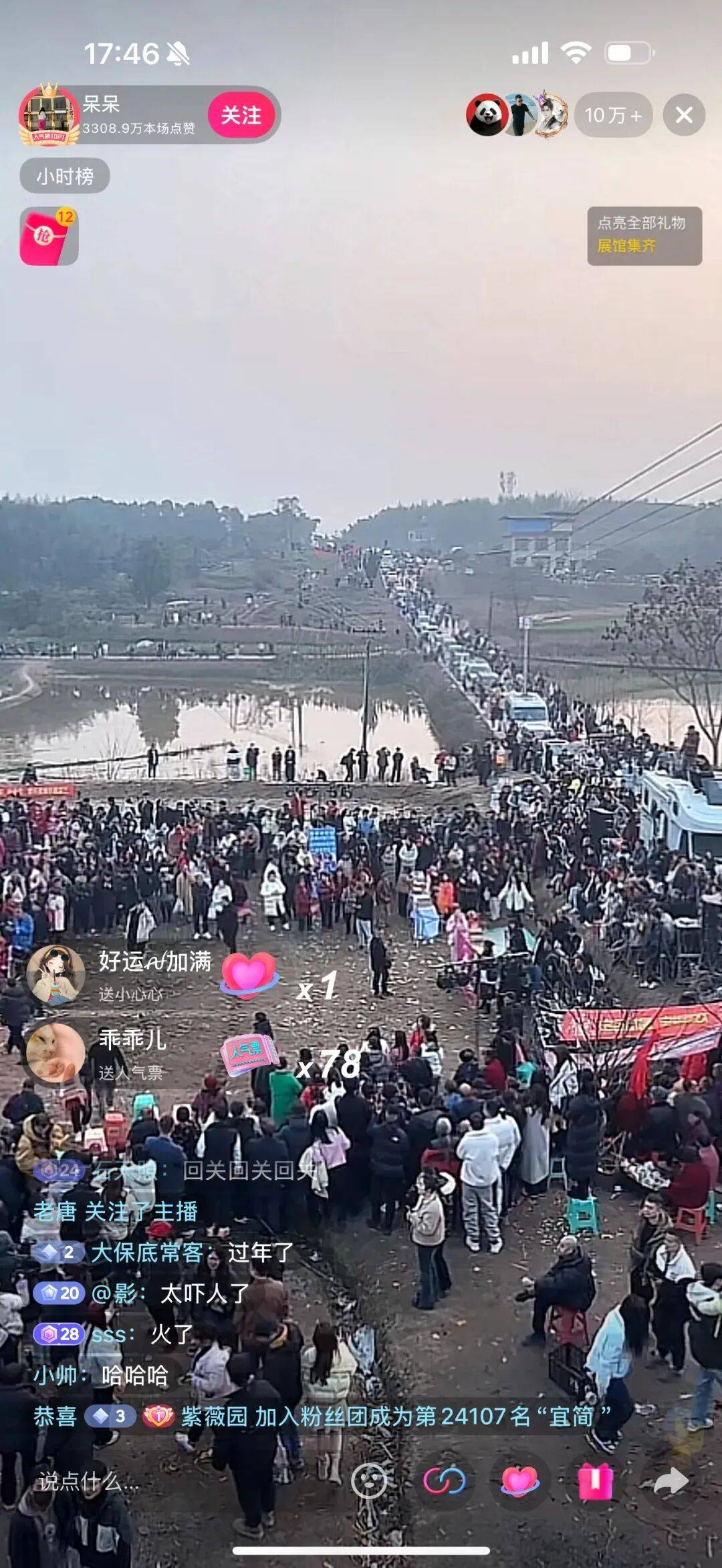 在1月12日的直播中,直播间人气超10万。“呆呆”表示,我不接受带货,只为家乡宣传,没见过这么大的场面,呆呆更呆了。她还表示“不担心猪会被吃完,只担心我要怎么把这群人招待好,不管怎样,我都要管你一口饱饭,一口热饭。”