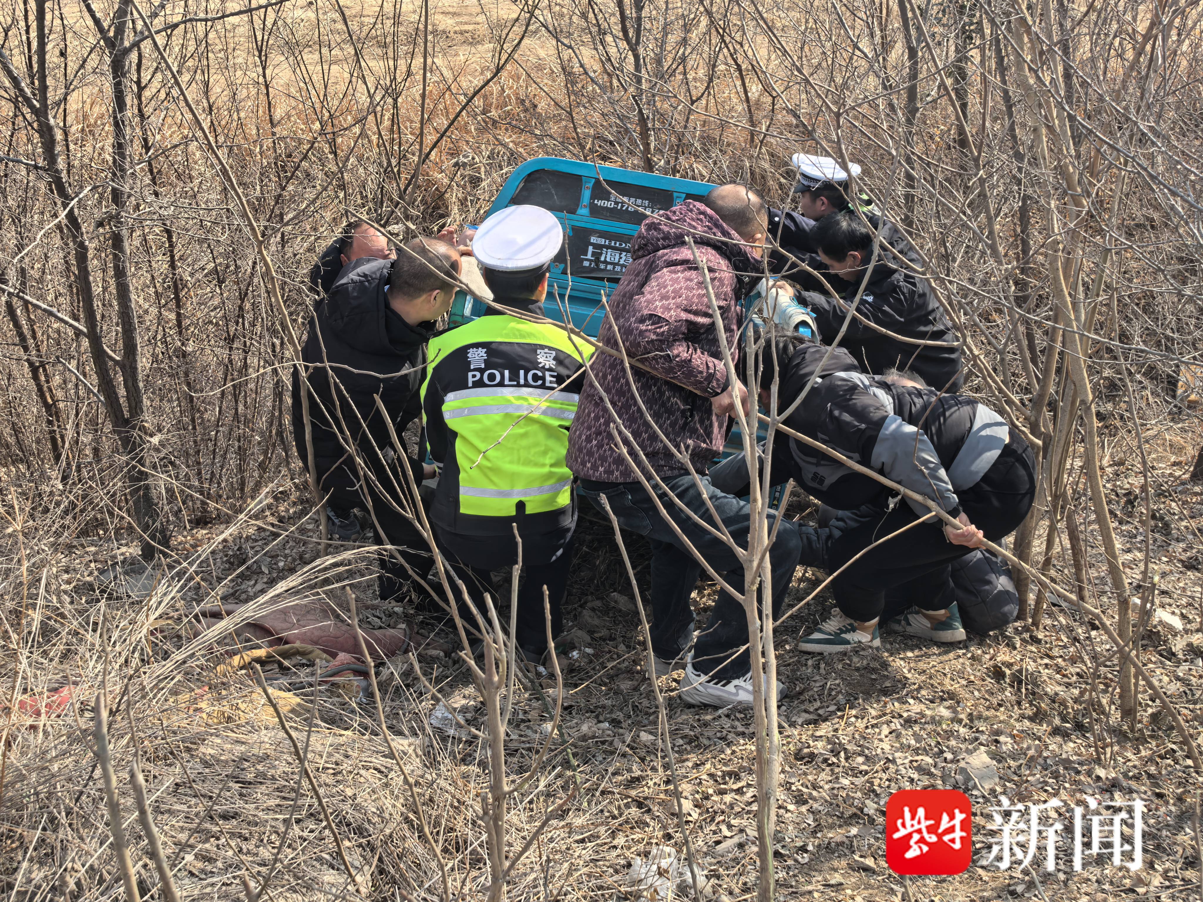 暖心!警民协力帮助侧翻老人脱困