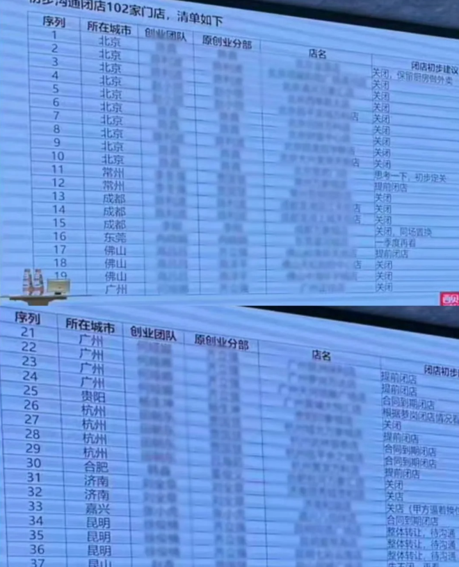 从城市分布来看,此次被列入清单的门店并未集中于低线市场,而是更多分布在一线及新一线城市。这类城市往往租金、人力成本较高,也是品牌早期和快速扩张阶段重点布局的区域。