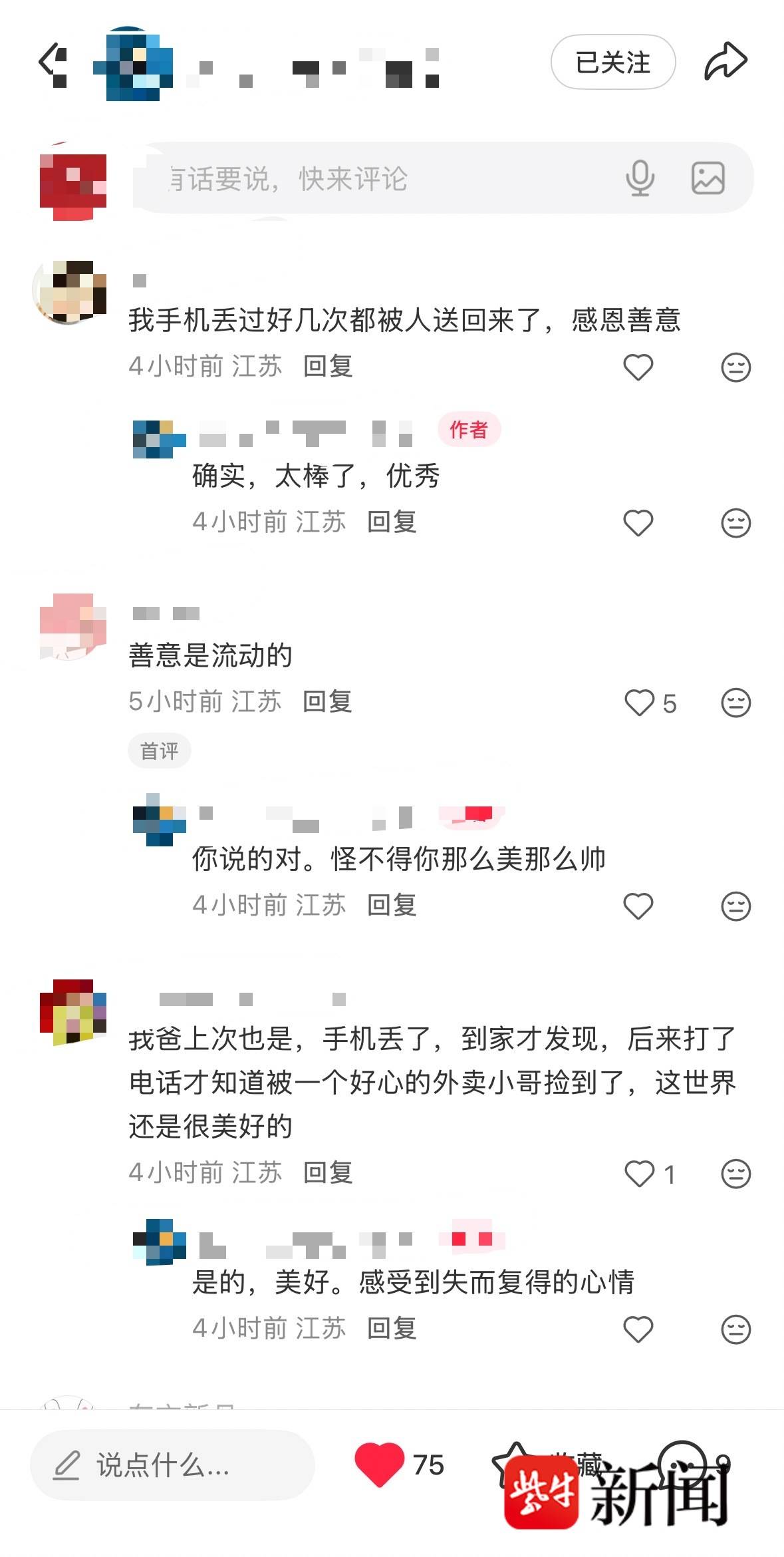 平日里热衷公益的曹女士,也曾多次捡到手机和身份证归还失主。她在社交平台上写道:“朋友们都说我命好,但我更想说,这就是我热爱南京的原因。”在她看来,锅贴店里毫不犹豫借出手机的食客、雪地里拎着菜等待失主的陌生人,这些普通人的小小善意,成了这个寒冷雪天里最暖的温度。