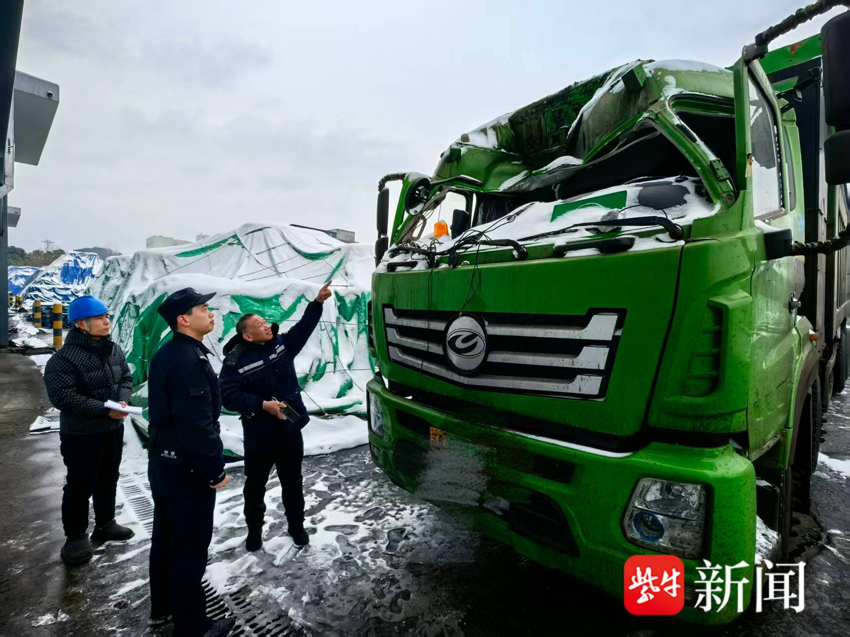 扬子晚报网1月21日讯(通讯员沈山河 黄绍琦 记者 薄云峰)20日一早,经过一夜飘雪,江边码头岸边一片白雪茫茫。当天,在凛冽江风中,扬子晚报河湖卫士党建联盟成员单位——长江航运公安局南京分局栖霞派出所的民警们正在值守巡逻时,发现一辆因路面冰冻湿滑而失控撞向护栏的货车。