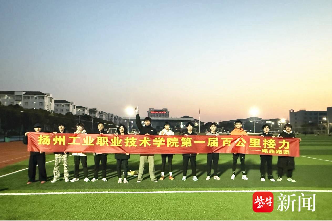 扬子晚报/紫牛新闻记者1月22日从扬州获悉,清晨6时30分,天色未明,本周,扬州工业职业技术学院11名学生干了一件“大事”:清晨,凛冽寒风中,同学们用时7小时11分56秒,在学校完成一场百公里接力赛,就此定格为校园年度体育记忆。