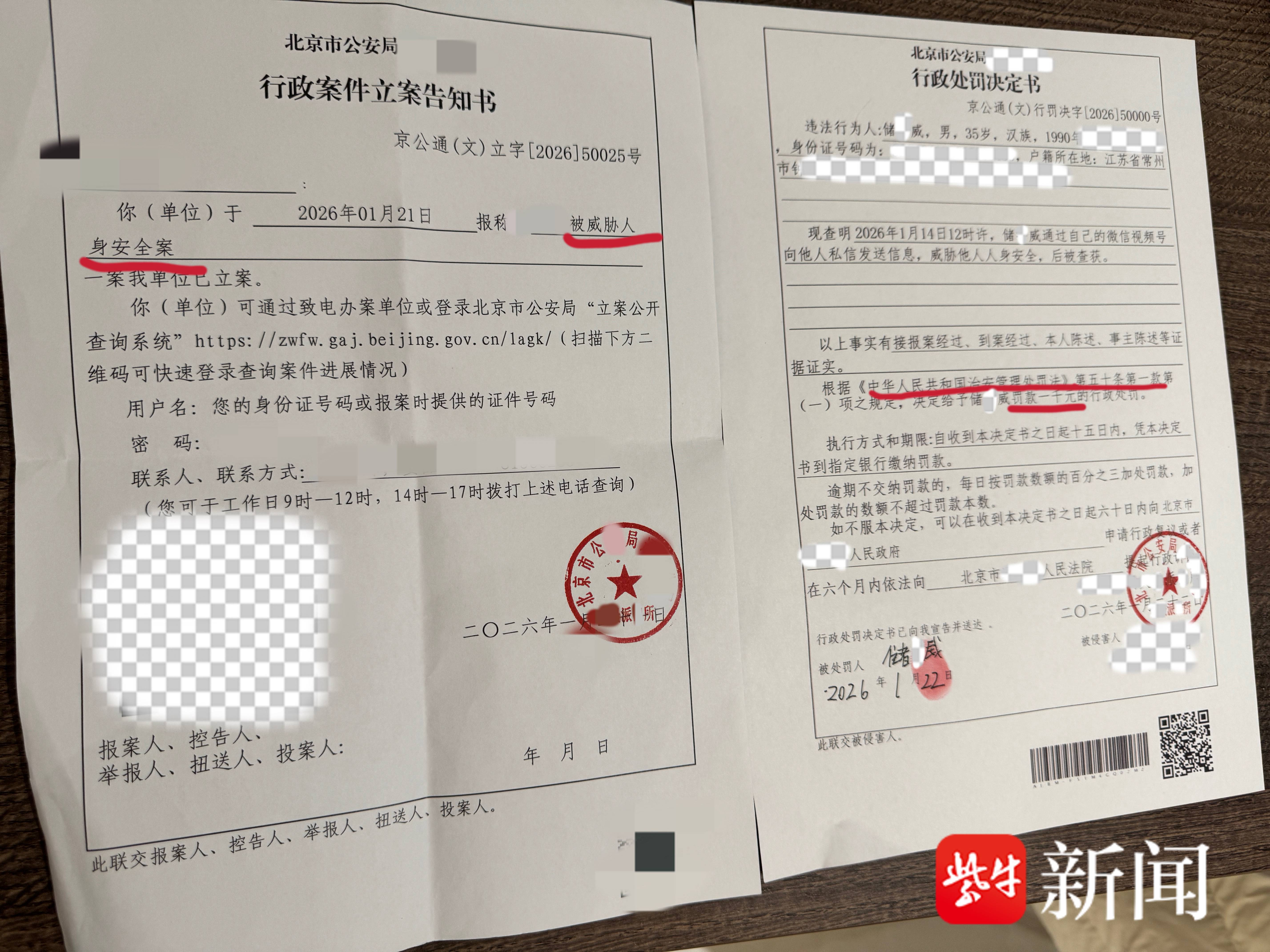 Penny表示,她在收到死亡威胁后迅速报警,在她和警方详细沟通后,警方快速锁定涉事网民,并跨省联合该网民所在地的辖区派出所对违法人员进行了传唤,依法做出了行政处罚,“那些网暴者认为他们的行为不用付出任何的代价,但在今年1月1日《治安管理处罚法》更新后,网暴者的行为很可能构成违法。”
