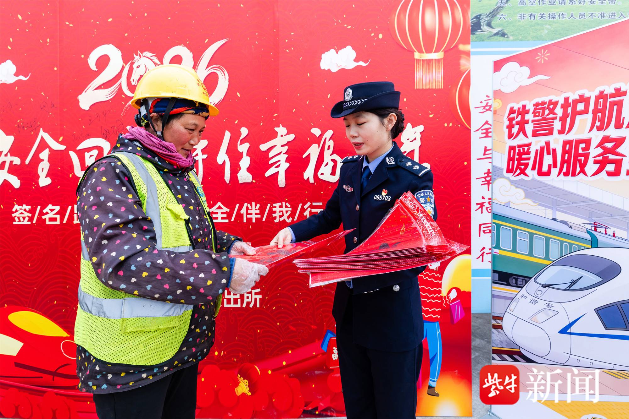 扬子晚报网1月30日讯(通讯员 张楠 记者 梅建明)“民警手把手教我们抢票、办临时证明,还送了春联福字,这回家的路既安心又暖心!”1月29日,在春运即将开启前夕,在南京南站周边一在建工地内,刚拿到暖心礼品的务工人员王先生脸上洋溢着幸福的笑容。当天,南京铁路公安处南京南站派出所组织春运宣传小分队,深入辖区最大的在建工地,开展“警暖工地·平安返乡”专项宣传活动,送安全、办实事、暖民心,用贴心服务守护农民工兄弟的回家路。