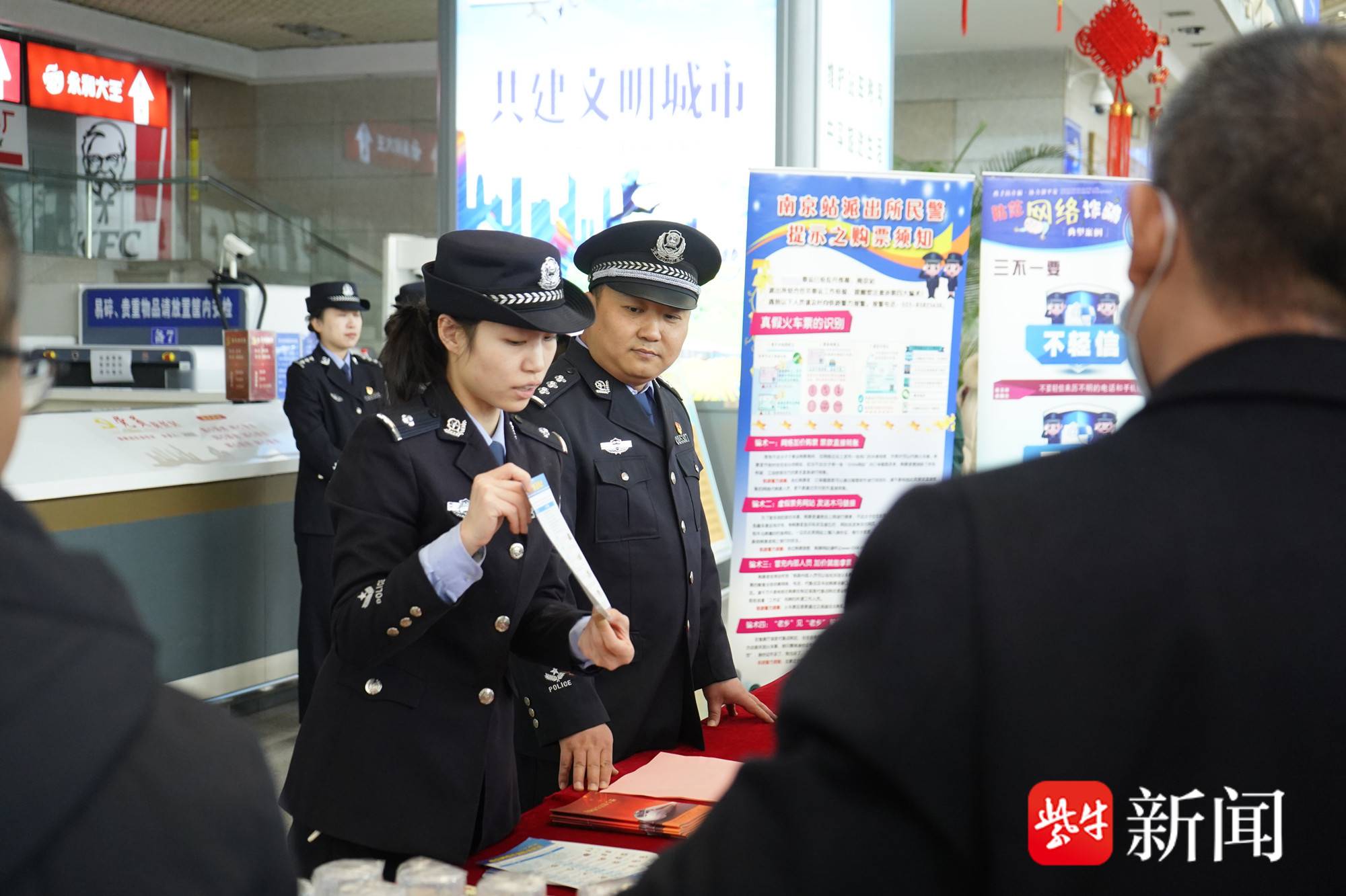 春节临近,南京的火车站热闹起来了——萌娃送福暖归途,铁警反诈护平安