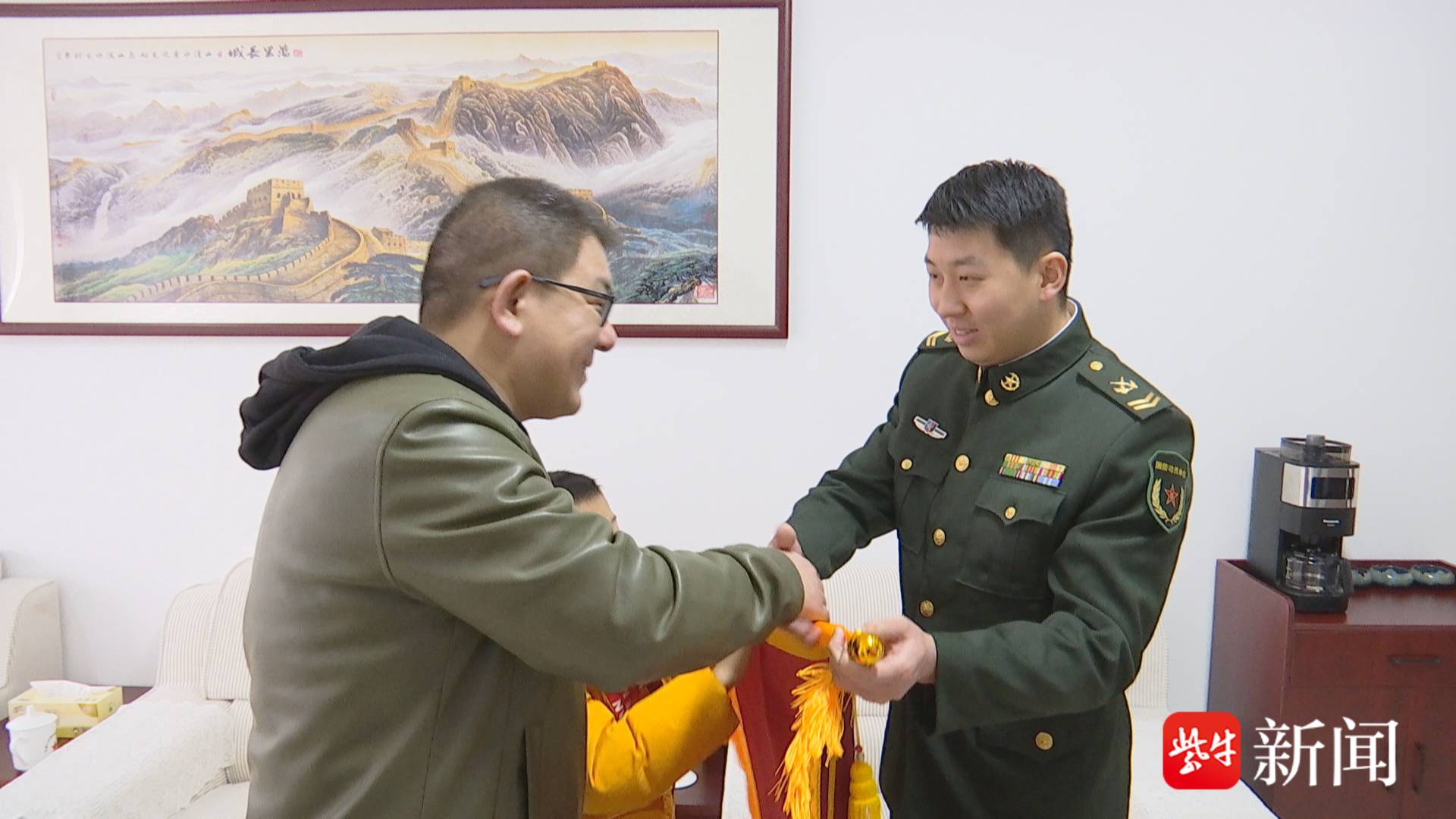 冬日的南京城,涌动着融融暖意。1月31日上午,江苏省军区直属分队某队分队长邱成魁收到了一份特别的感谢。半个月前,被他救助的伤者家属,如今专程来到部队送上锦旗,向这位暖心军人表达最诚挚的谢意。