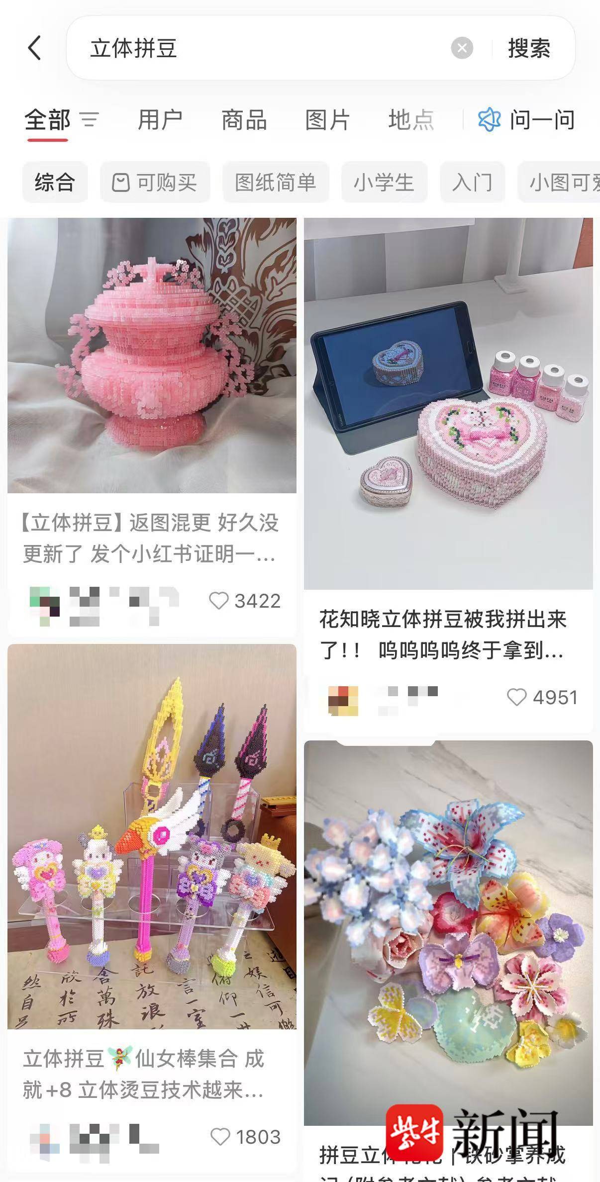 打开社交平台,各类拼豆作品随处可见,既有贴合网络热点的霉豆腐造型,也有精致到舍不得碰的立体摆件。从“我染上了拼豆”到“用拼豆的方式制作霉豆腐”“拼豆进入3D立体时代”,一个个话题接连登上小红书热榜,这种“老式”手工也因此在网络上持续走红,被网友们调侃为“一代人有一代人的十字绣”。截至2026年1月,小红书“拼豆”话题浏览量已突破57亿,入选《小红书2025年度兴趣报告》十大出圈“奇怪”兴趣,还跻身淘宝2025年度十大商品。