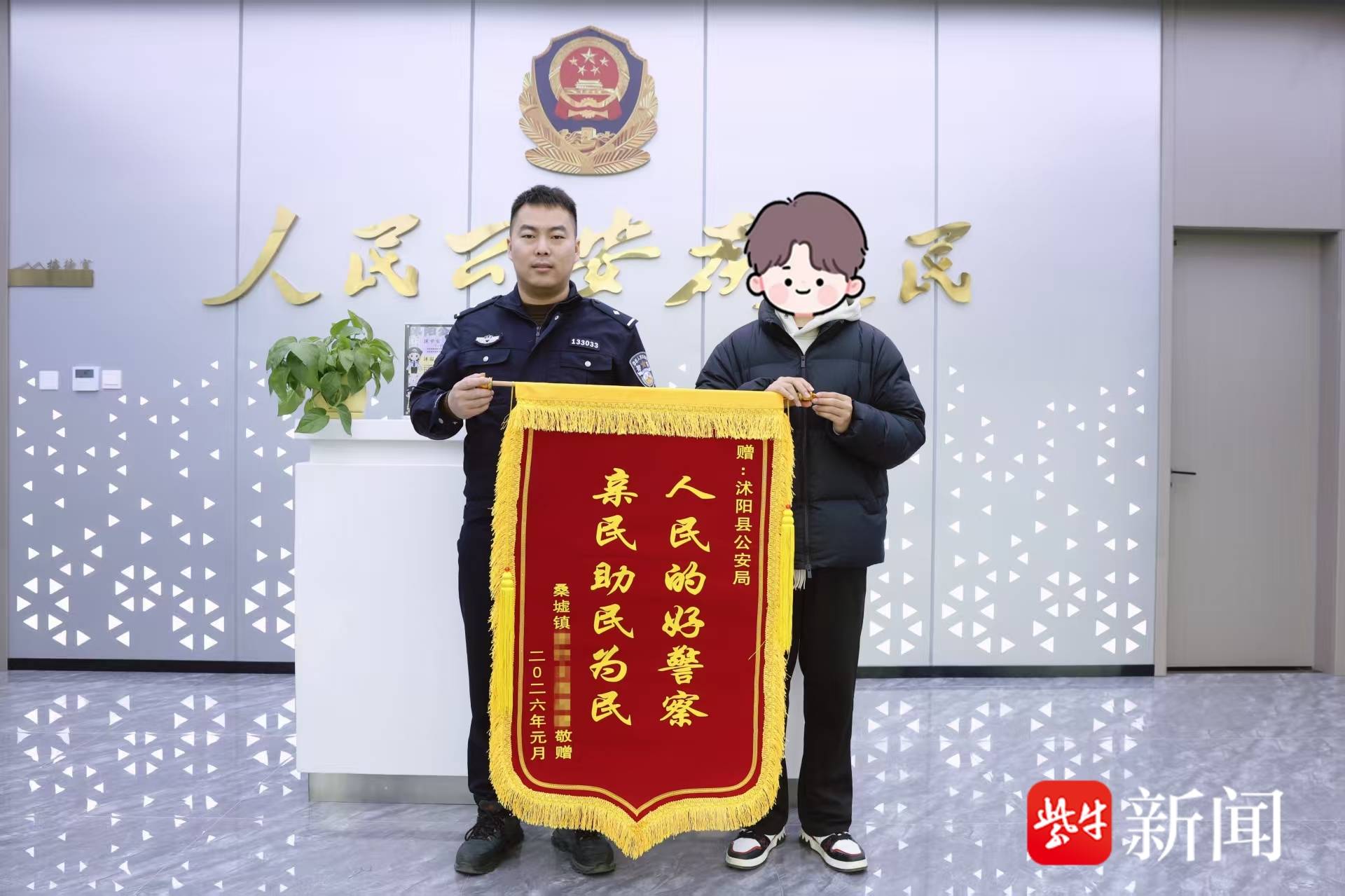 扬子晚报网2月4日讯(通讯员 毛雯雯 记者 高峰) “太感谢你们了,帮我抓住了骗子!”近日,周先生来到沭阳县公安局沐点阳光警民会客厅,将一面锦旗送到民警房飞虎手中,为民警的尽责高效点赞。