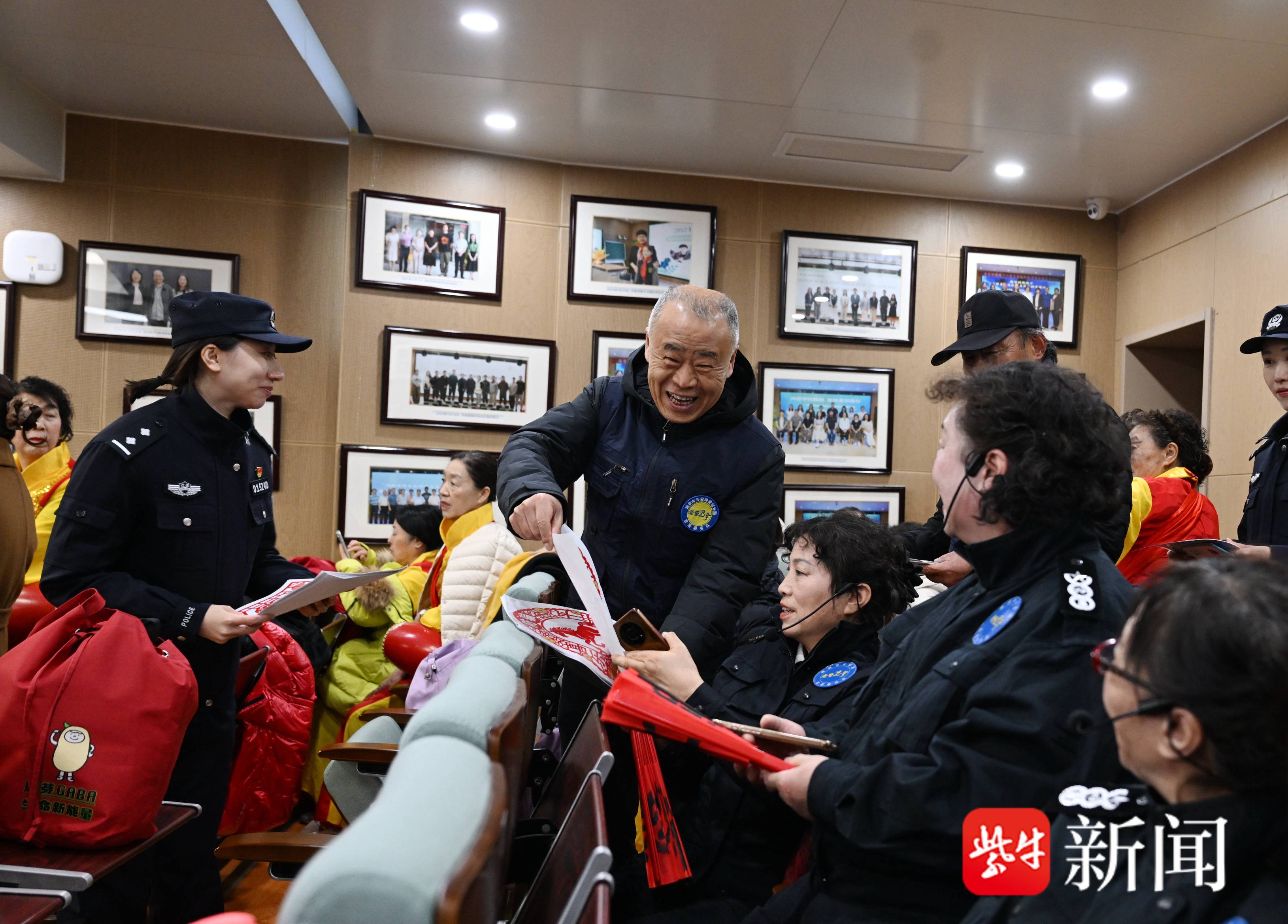 此外,建邺分局民警和“老警卫宁”志愿服务队近日在南京致远外国语小学乐山路分校礼堂内,举办“驫腾江湾 银龄同乐”迎新春活动。借此时机,为现场老年朋友带来一场精准贴心的反诈宣传,将安全守护融入节日祝福。
