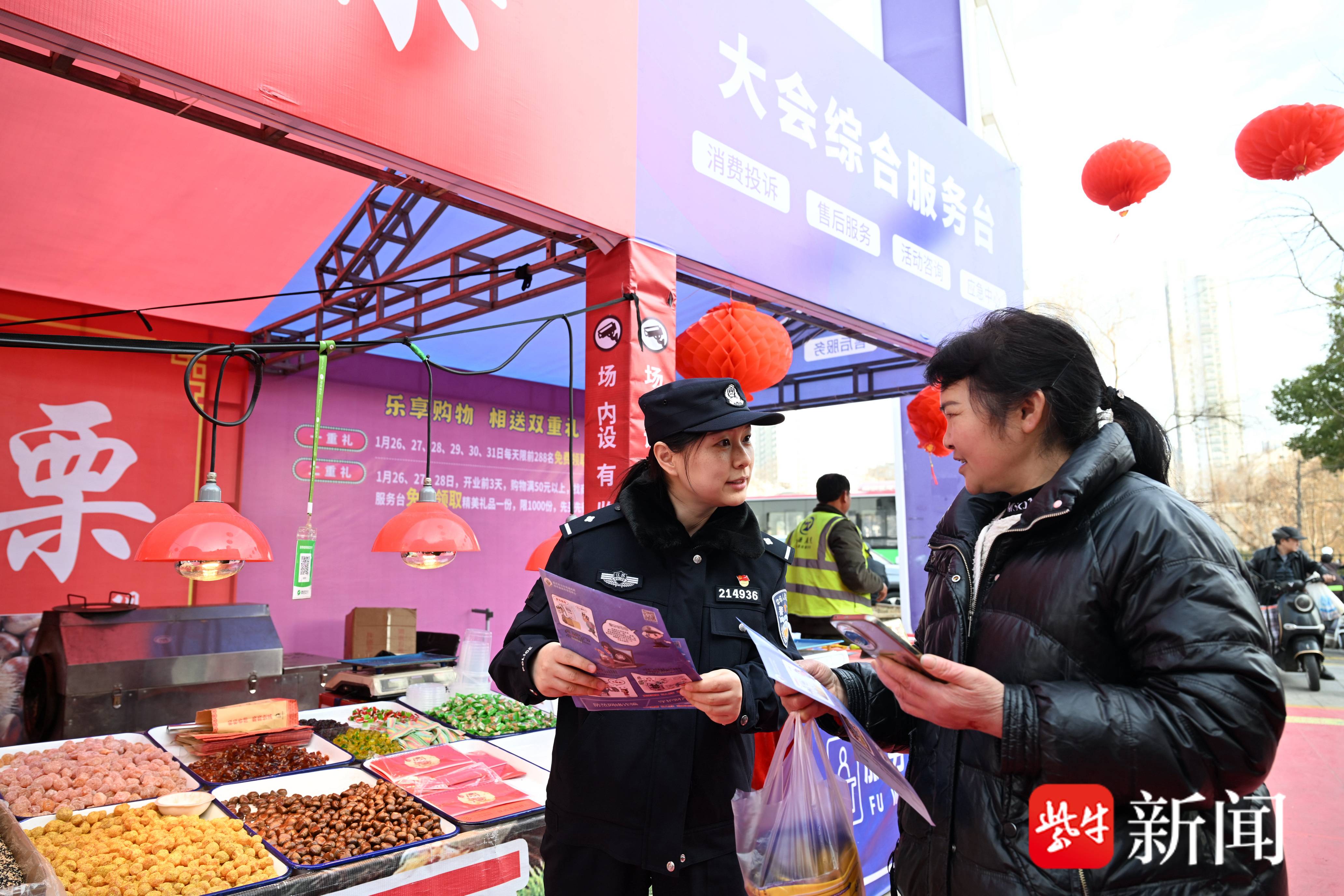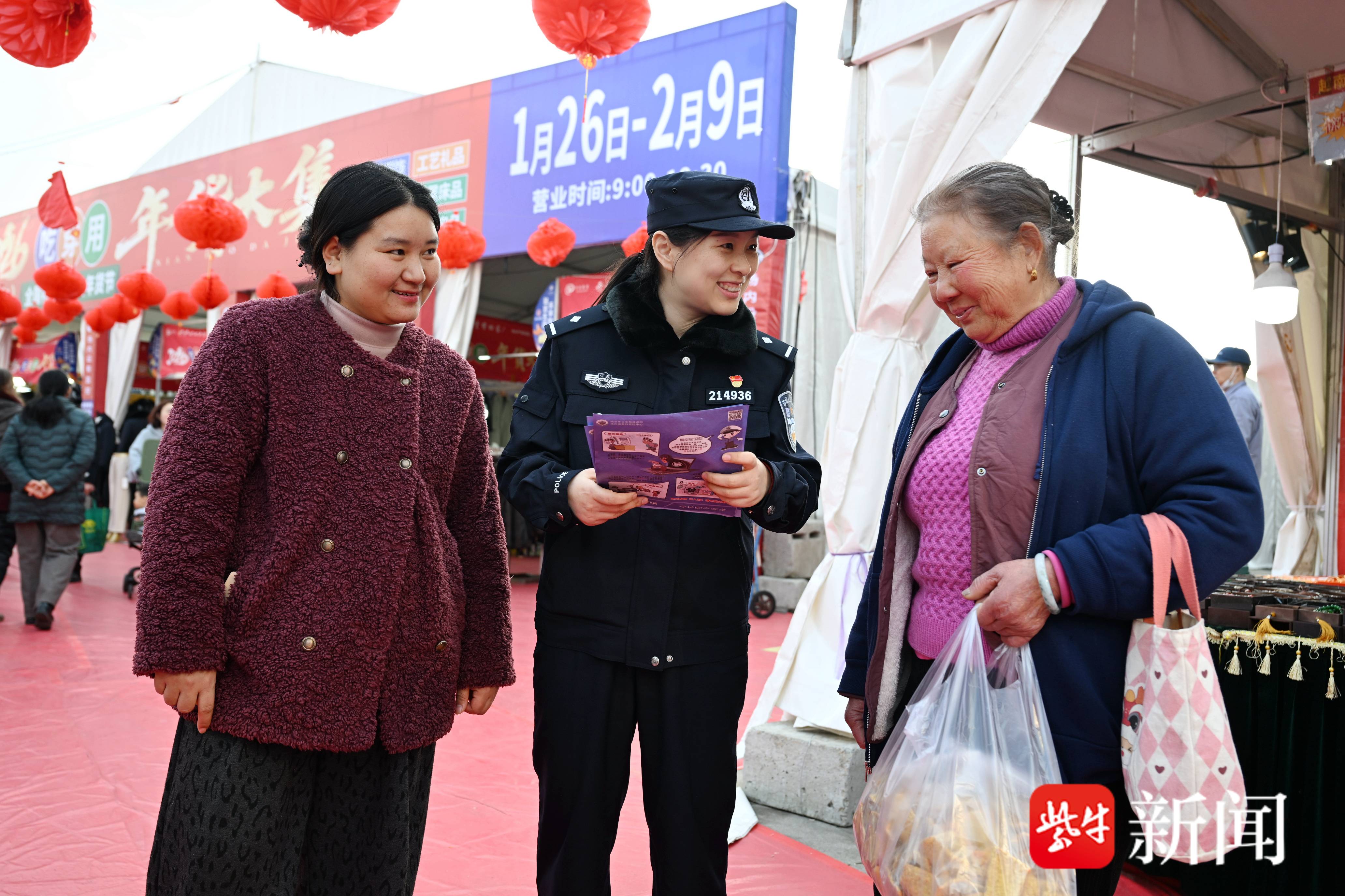 2月4日,南京市公安局建邺分局莲花派出所民警走进辖区迎新春年货大集,开展反诈宣传活动。