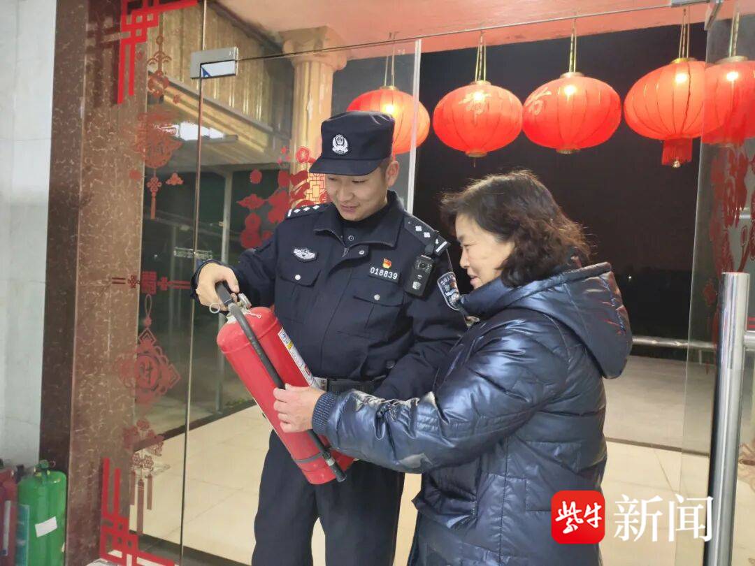 瓜埠派出所民警叮嘱场馆负责人春节期间用火用电安全。