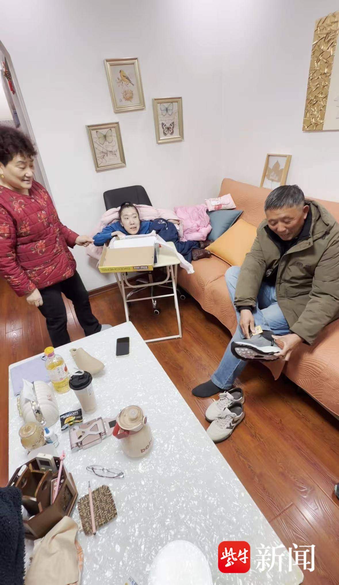 暖心的是,橙橙还精心给陈叔叔挑选了一双鞋子,“陈叔叔在工地上奔忙费鞋,有双好鞋子能护着他些。”橙橙说,自己的能力有限,目前只能维持母女俩的基本生活,还没有能力像陈叔叔一样做公益,帮助更多的人。但这是她一直以来的初心:“等我有能力了,一定要和陈叔叔一起,帮助更多和我一样的残障人士,把这份温暖传递下去。”
