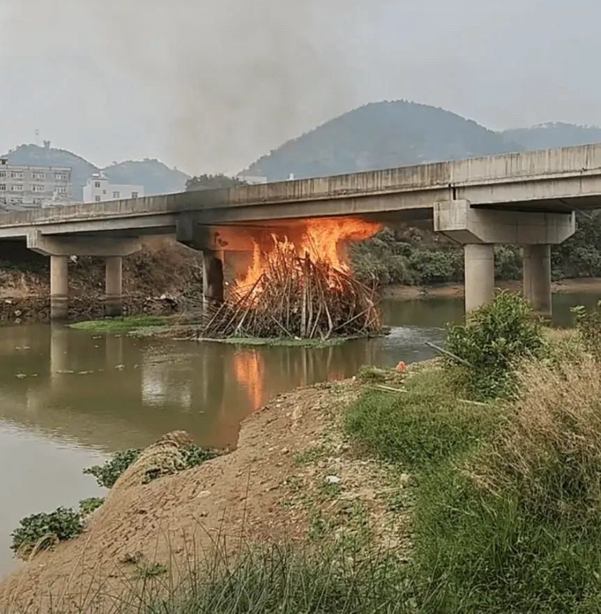 据网传视频显示,河上大桥已被大火烧黑,火源疑似源自桥下被点燃的堆积枯木。视频中,大火没有熄灭的势头。扬子晚报/紫牛新闻记者了解到,着火大桥名为龙安大桥,位于北流市(由玉林市代管)北流镇龙安村,是80多米宽圭江两岸龙安村村民的重要通行渠道,于2021年10月开放行人和非机动车通行。