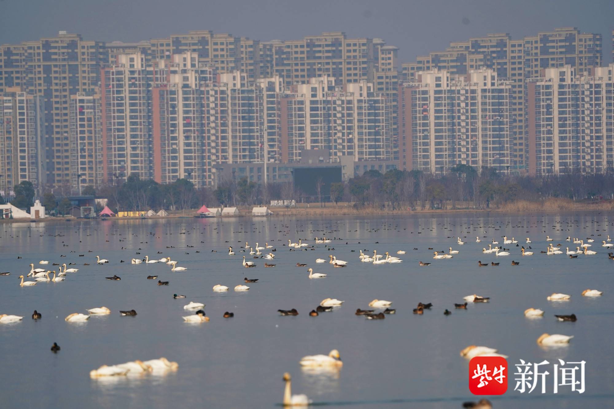 而这近千只天鹅聚集的场景,也吸引了不少市民和游客前来观赏、拍摄,一幅人与自然和谐共生的画卷跃然而出,让人惊叹。