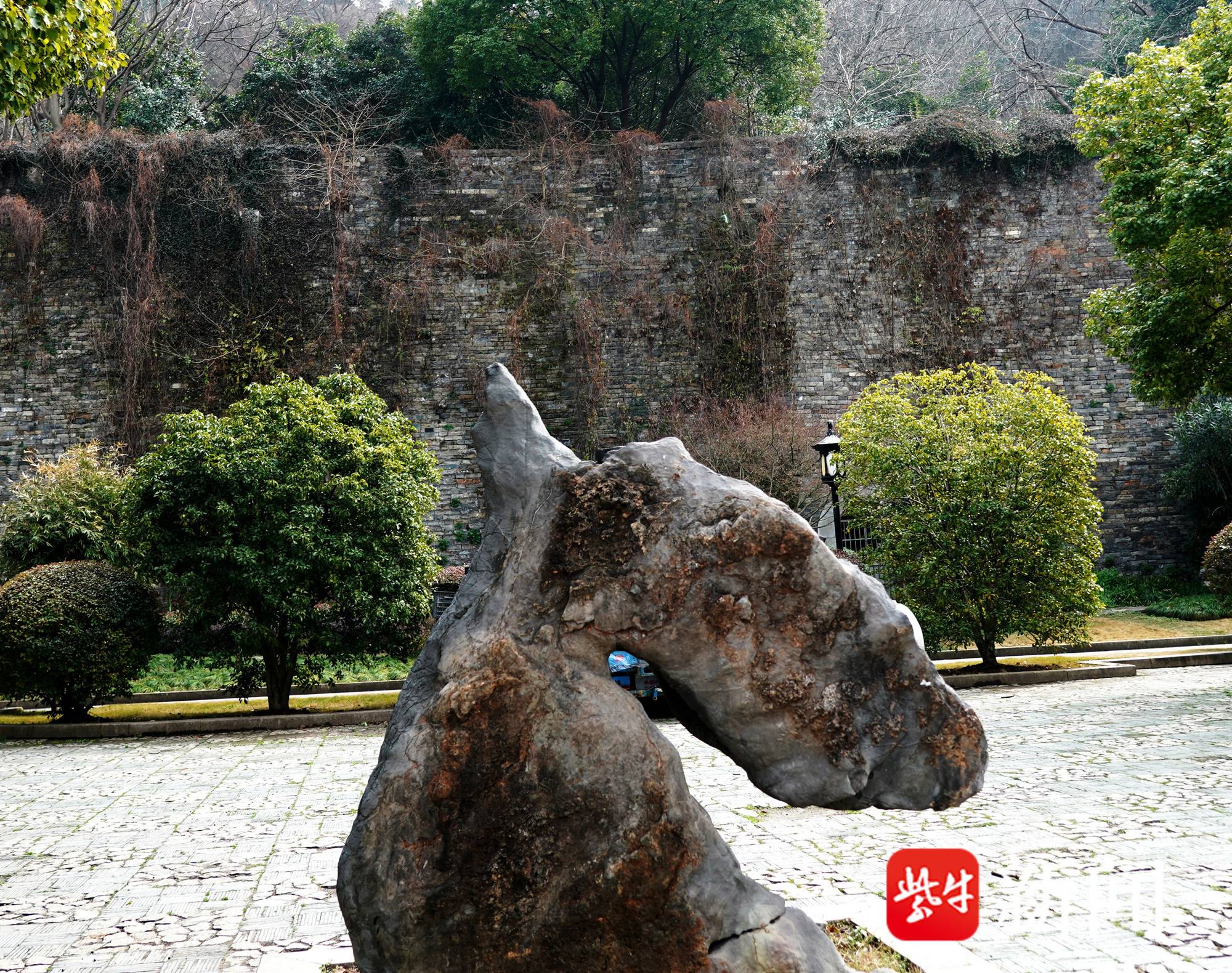 扬子晚报网3月2日讯(通讯员 武家敏 记者 梅建明)2026年是农历马年,马年说马,这不,在南京阅江楼城墙下的一花园中,有一块岩石吸引了众多市民的关注,仔细一看,这块岩石竟然酷似一匹“骏马”的头部。