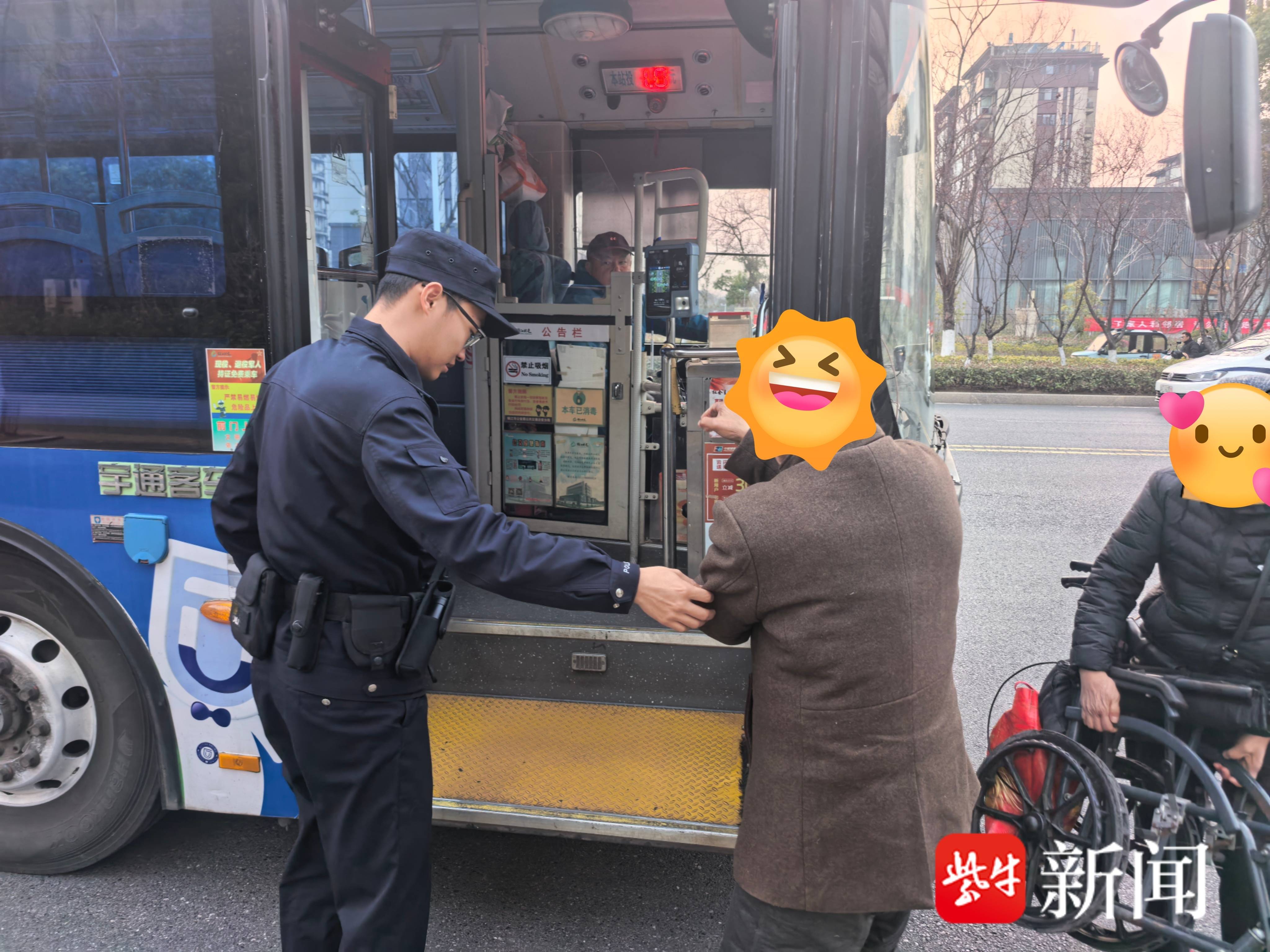 考虑到老人年事已高、行动不便,且天色渐晚,民警决定主动护送。他们将老人连同轮椅推至附近公交站台,并在公交车到站后,小心翼翼地搀扶老人上车,协助其坐稳。临行前,民警再三叮嘱司机:“老人家腿脚不便,请到站时多停一会儿,等他坐稳了再起步。”