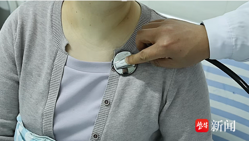 医生在为张女士(化姓)做出院前检查
