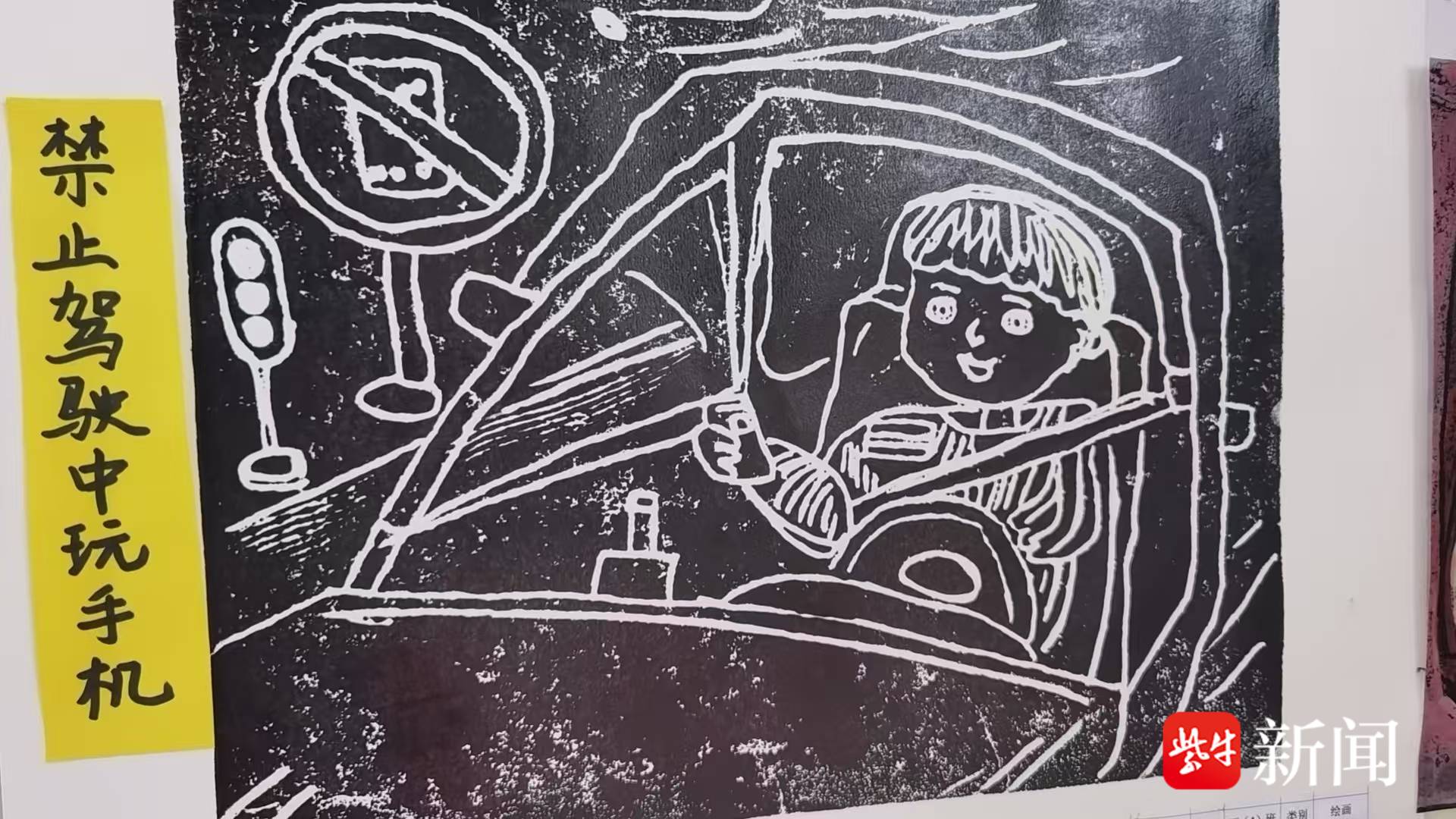 高淳漆桥版画是非物质文化遗产,核心基地正是漆桥中心小学。下午,同学们以传统技法现场创作交通安全主题版画,鲜明的底色对比和流畅的线条笔触表现出坚定的安全心声。