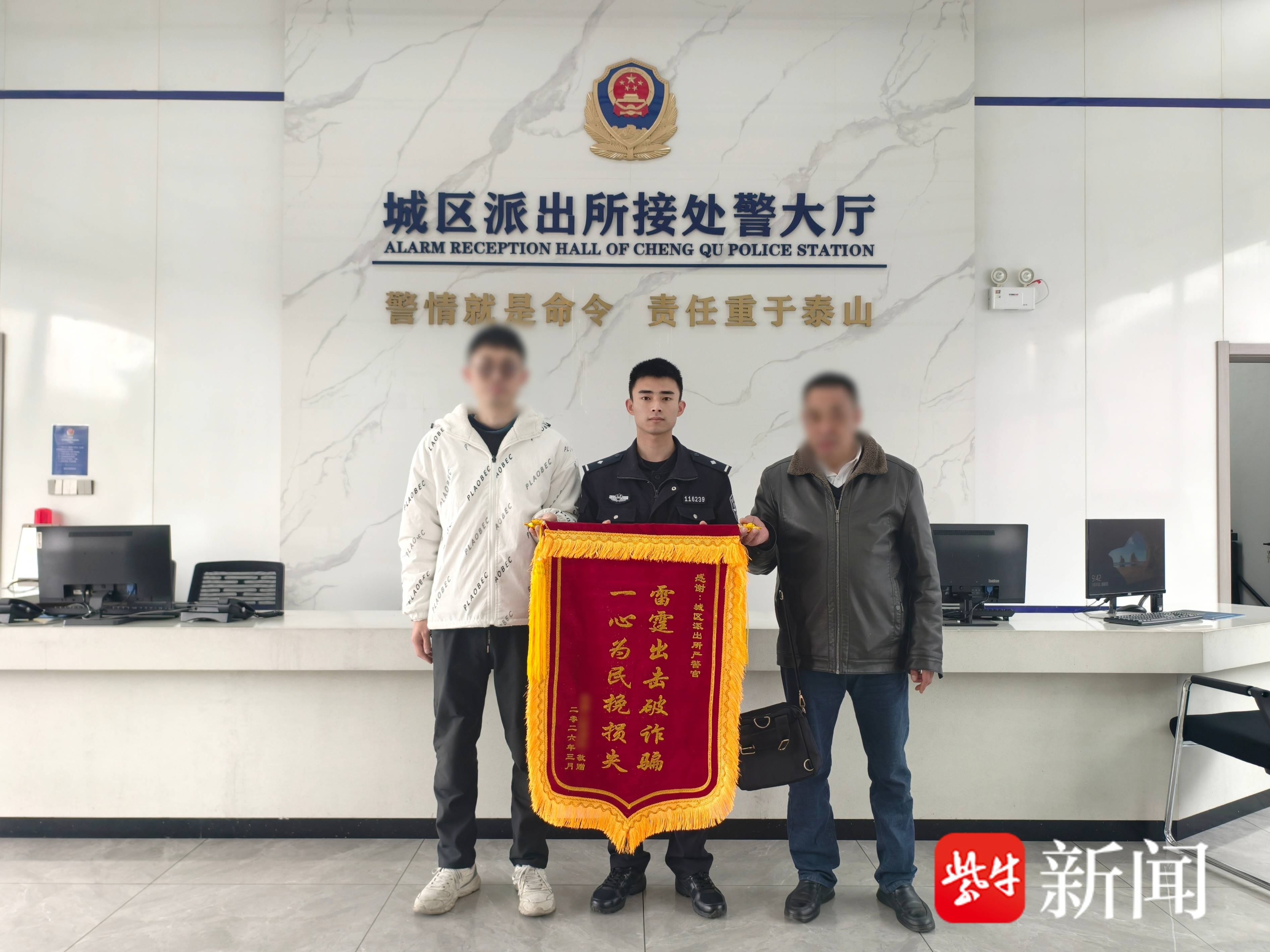 城区派出所民警接警后,迅速展开研判,顺着资金流向和聊天记录,很快锁定了身处异地的周某,通过身份研判与周某取得了联系。原来,周某也是“局中受害人”,其投资股市的金额被冻结,一时间慌了神,又怕被“好兄弟”责怪,通过高效沟通、释法明理,最终,张先生的84000元如数退回。为表达感谢之情,张先生为民警送来锦旗。