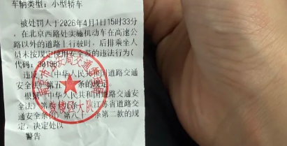 南京网友展示罚单,后排未系安全带,首违予以警告