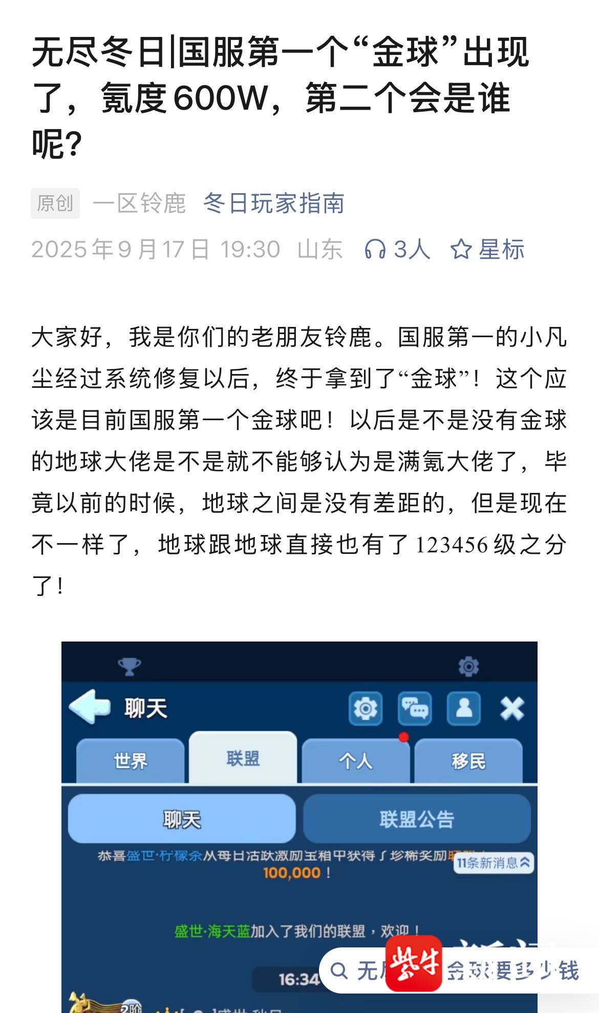 冯先生的一位朋友在海外服,一家人玩《无尽冬日》,前前后后充了200多万人民币。而这200万,距离游戏中最顶级的追求——“金色地球”——仍有一段距离。想获得这个荣誉,需要3.75亿积分,约合人民币486万元。