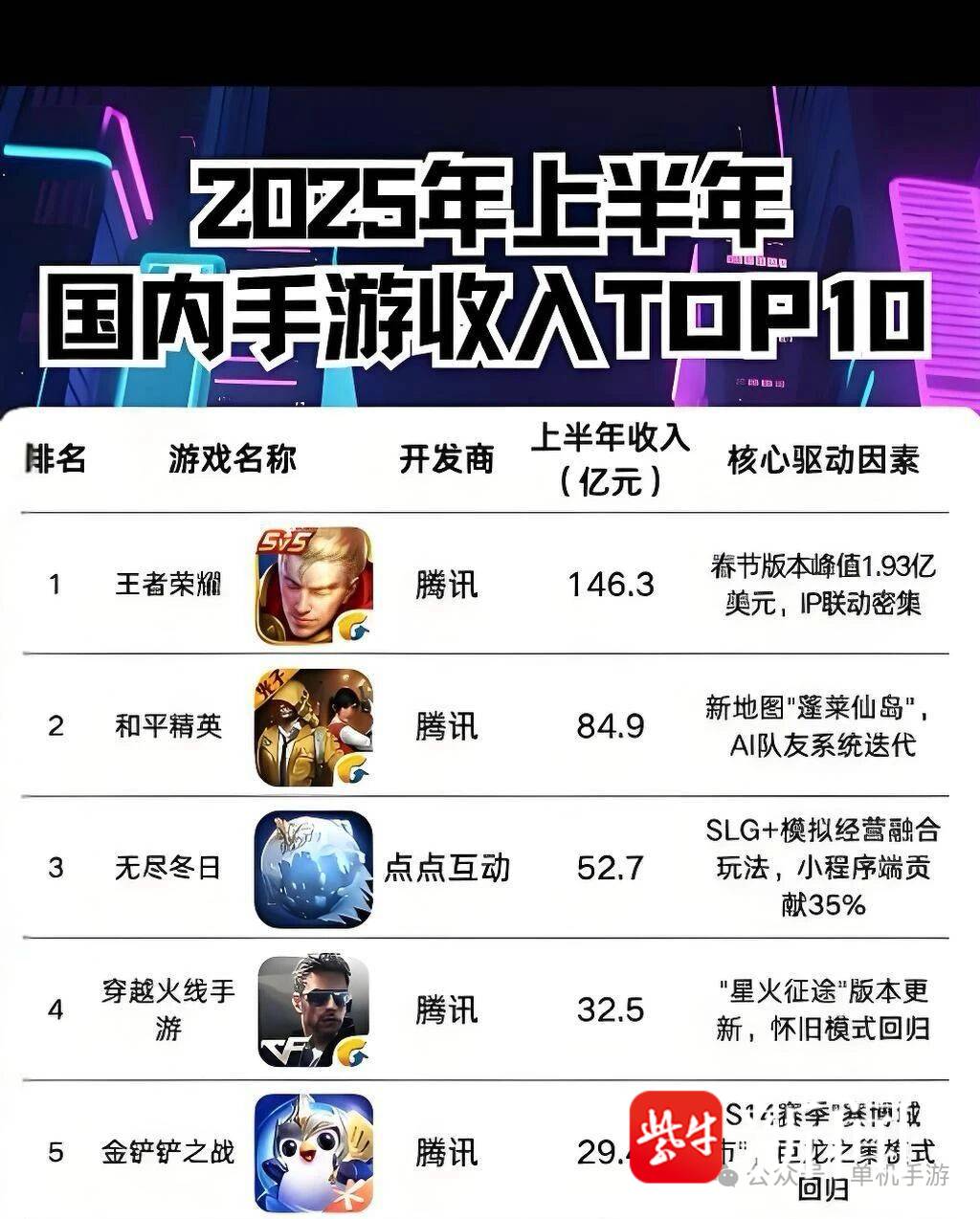而《无尽冬日》的氪金烈度,在2025年中国手游市场中甚至还排不上榜首。根据2025年上半年数据,这款黑马手游以约52.7亿元的收入排在第三位,但前两位的《王者荣耀》和《和平精英》,年收入分别高达约146.3亿元和84.9亿元。