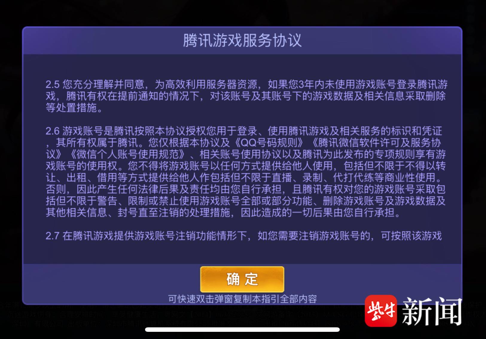 记者查阅了多家主流游戏平台的用户协议,发现条款高度相似。《腾讯游戏许可及服务协议》条款2.6明确写道:“游戏账号是腾讯按照本协议授权您用于登录、使用腾讯游戏及相关服务的标识和凭证,其所有权属于腾讯。”按照这个逻辑,你充了上百万的账号,从法律条款上看,并不“属于”你——你只是被“授权使用”。