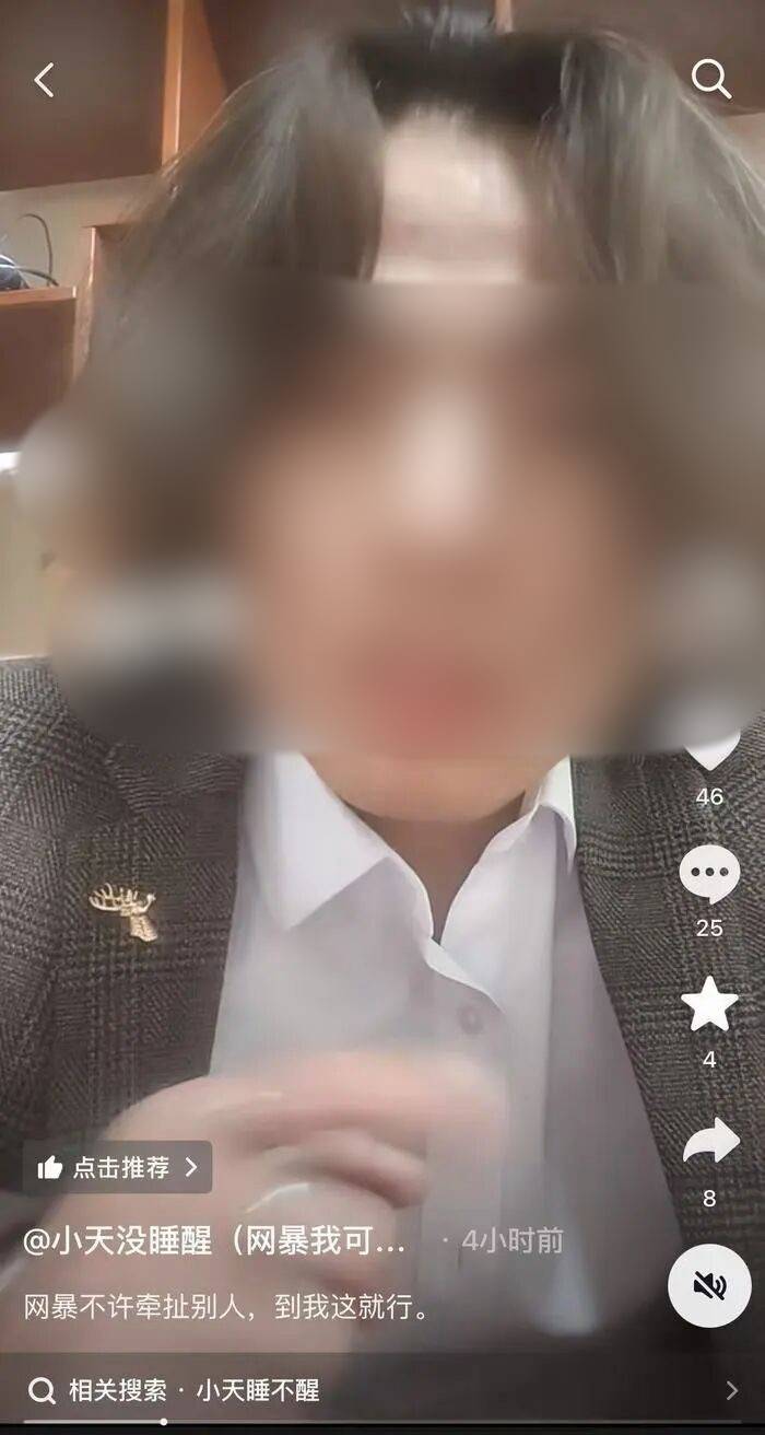 此外,有媒体报道称,4月7日晚,一位疑为涉事主播的网友“小天没睡醒”在其个人账号发布视频承认错误,并表示“对是对,错就是错”。该网友还在视频中多次强调,“只能网暴我个人”,“不能牵扯到父母,不能牵扯到我的对象,不能牵扯到我的朋友”。