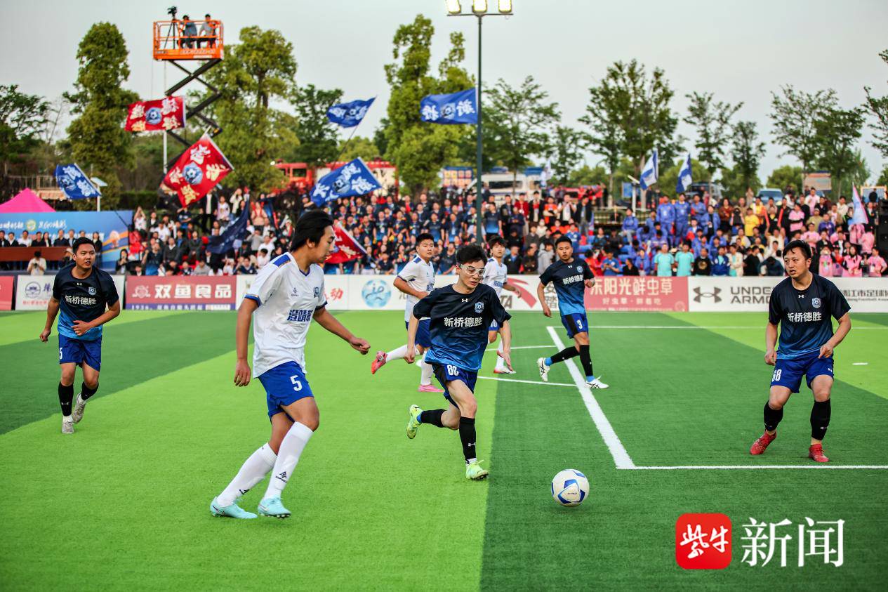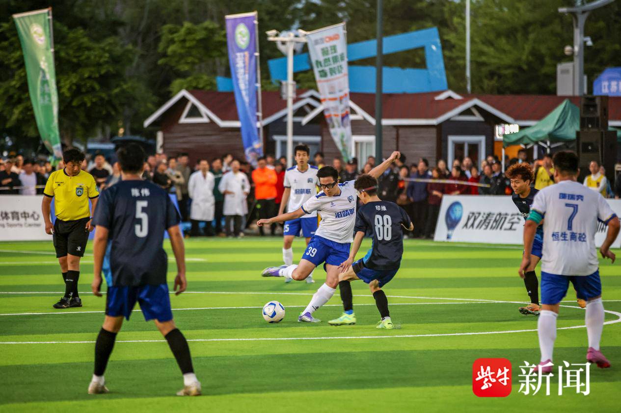 开幕式现场,江畔微风和煦,夕阳余晖斜照,球场激情燃烧。本届揭幕战由新桥德胜队对阵澄靖联队。两支队伍的球员来自各行各业,为共同的热爱奔赴绿茵赛场。新桥德胜队球员涵盖在校学生、返乡创业“新农人”、基层村干等。球员陈伟曾经在新加坡工作生活,2024年回乡创业成为一名“新农人”。“今年我代表家乡新桥镇参赛,就是想让更多人看到‘新农人’的赛场不只在田间,更在人生的每一片热土上。”陈伟说,种地和踢球,同样是脚踏大地,哪一样都不能松劲。