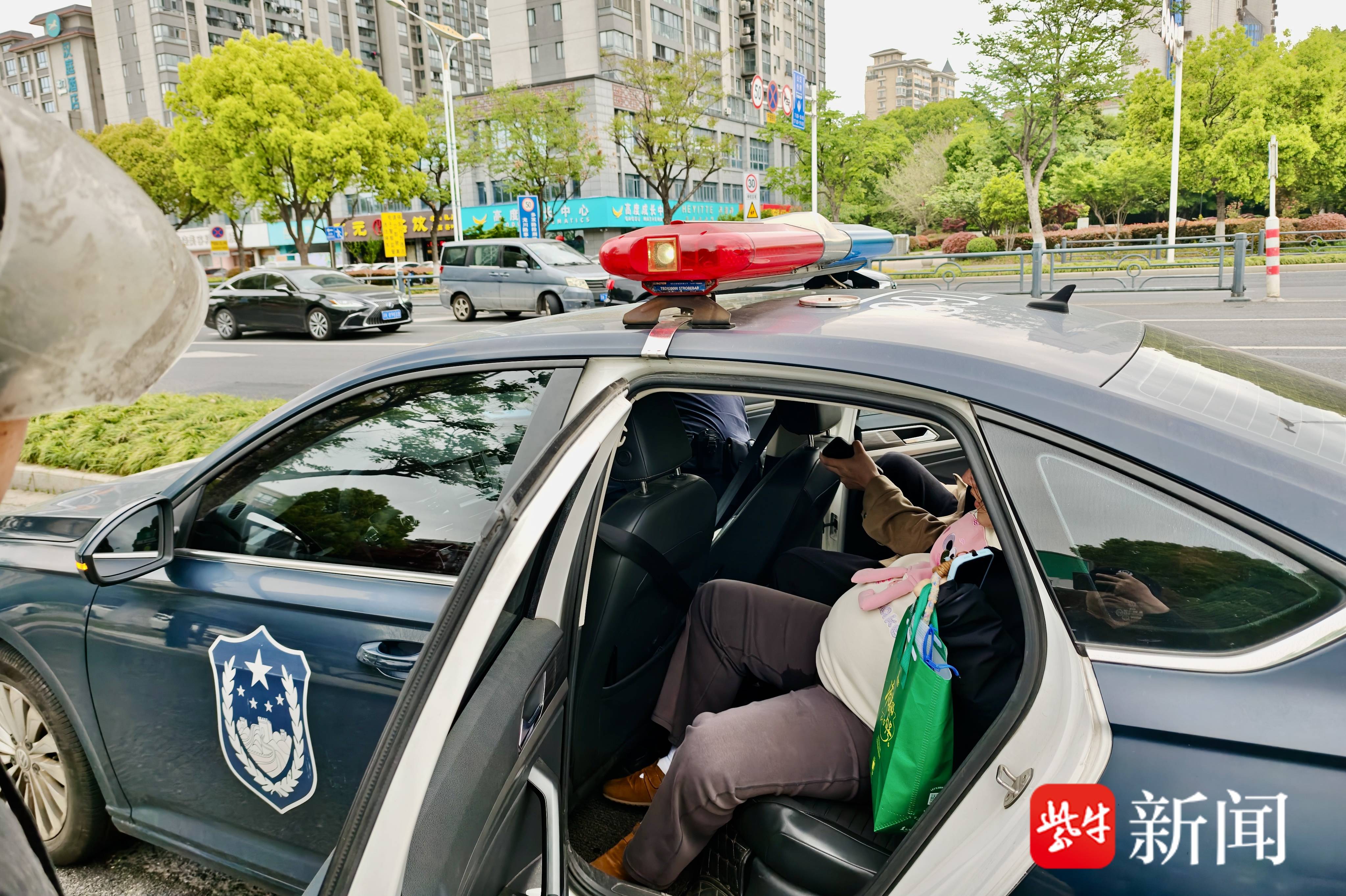 民警陈凌飞当机立断,决定不等急救车辆,与辅警朱雨及丈夫钱某一道,小心翼翼将该名孕妇搀扶上警车后排平躺安置。辅警朱雨随即拉响警笛、开启警灯,在确保道路安全的前提下,以最快速度开辟“生命通道”,一路疾驰驶往江都区人民医院,仅用时三分钟。因送医及时、护送高效,孕妇被安全及时送达急诊室接受救治,身体无碍。
